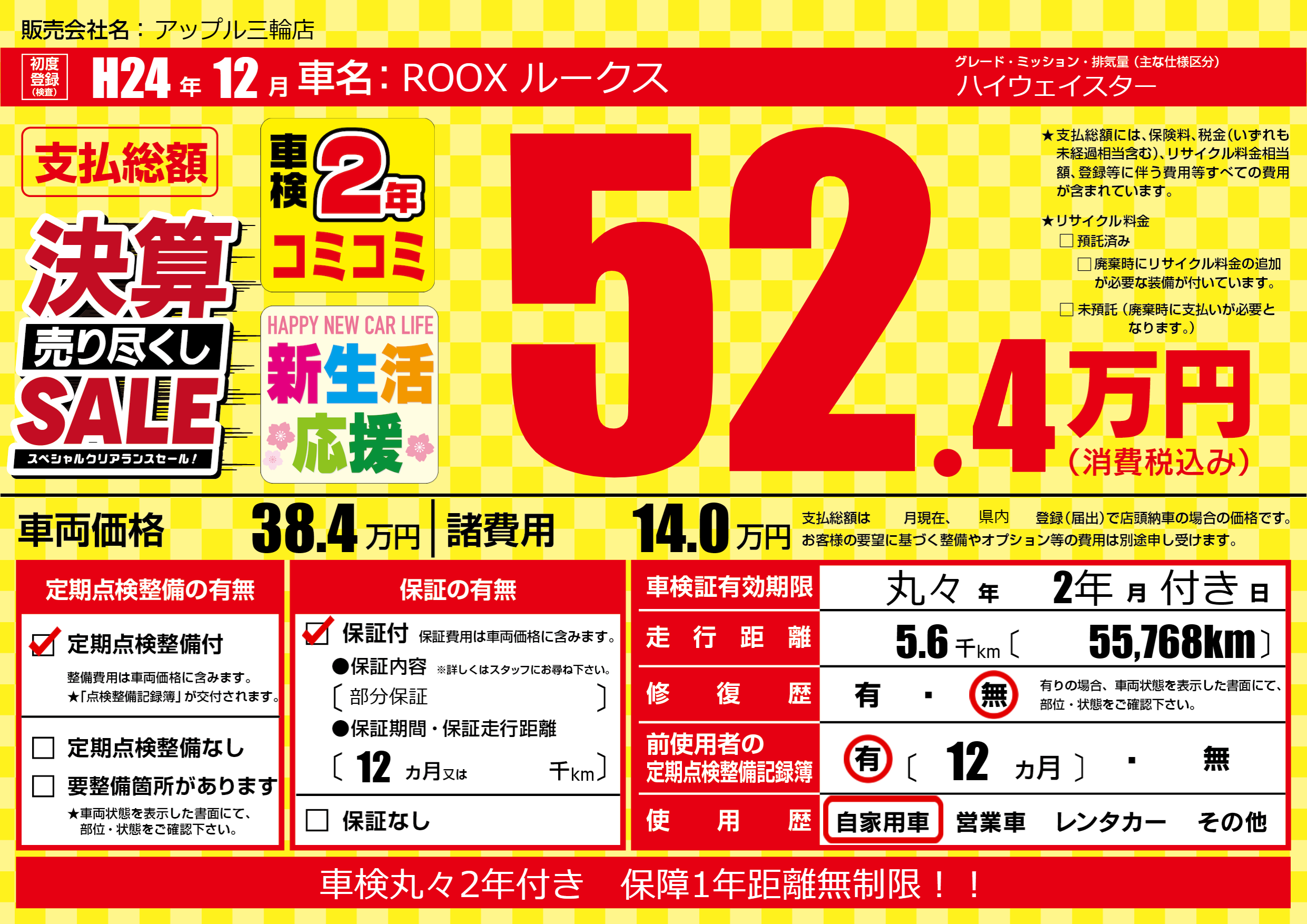 | 定期点検整備 | 定期点検整備あり | ||