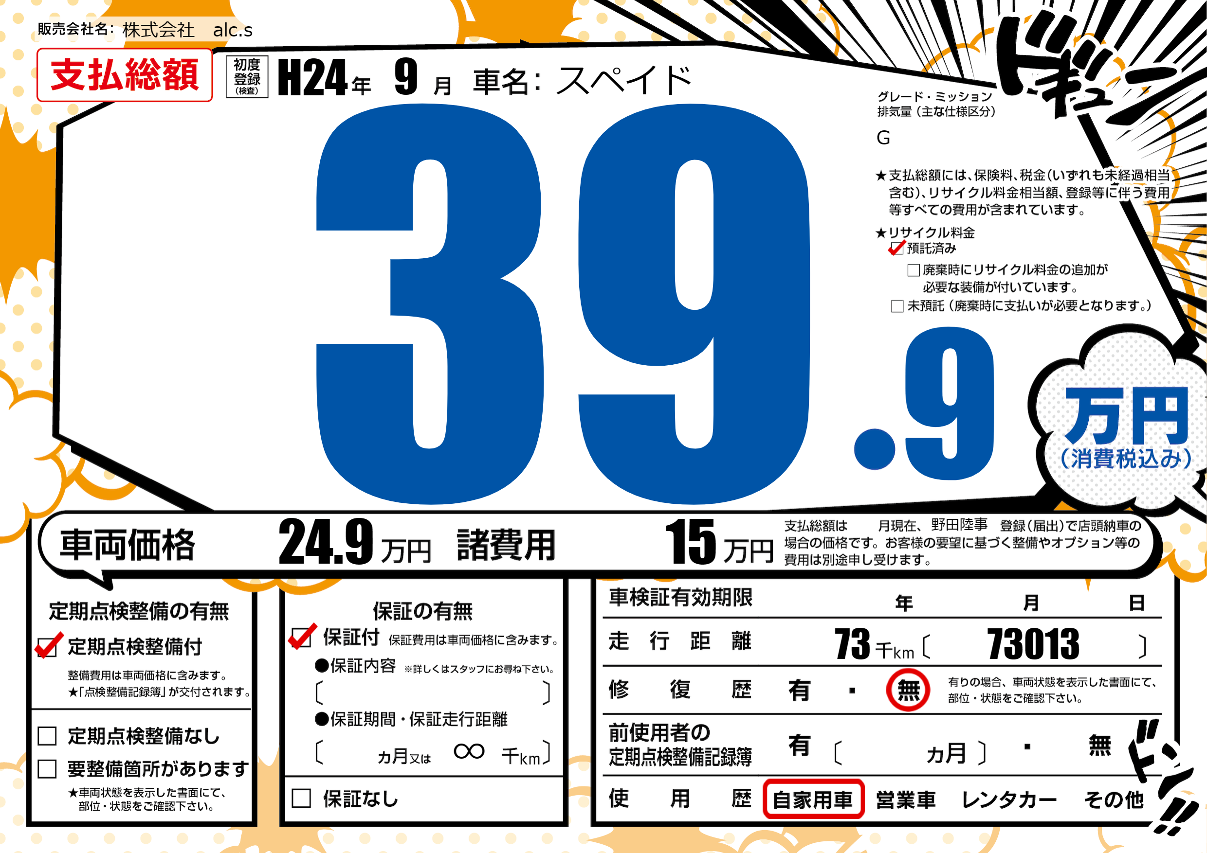 | 走行キロ | 7.3万km | 初年度登録 | H24年9月 |