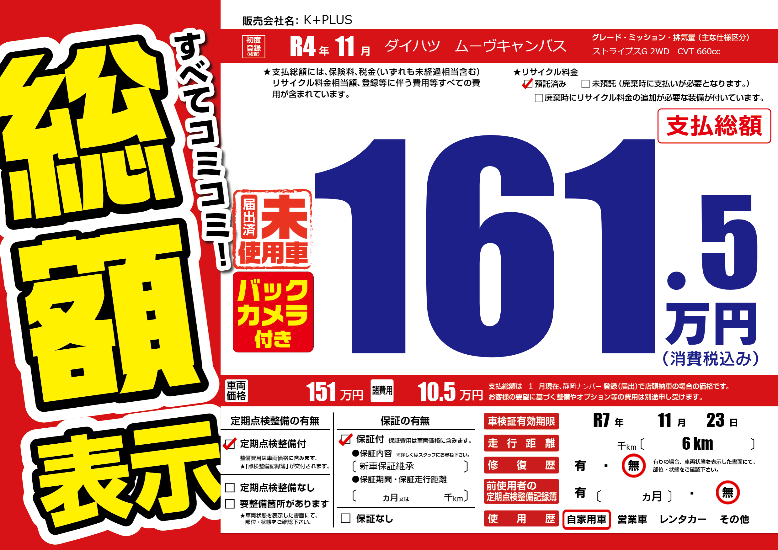 | 走行キロ | - | 初年度登録 | R4年11月 |