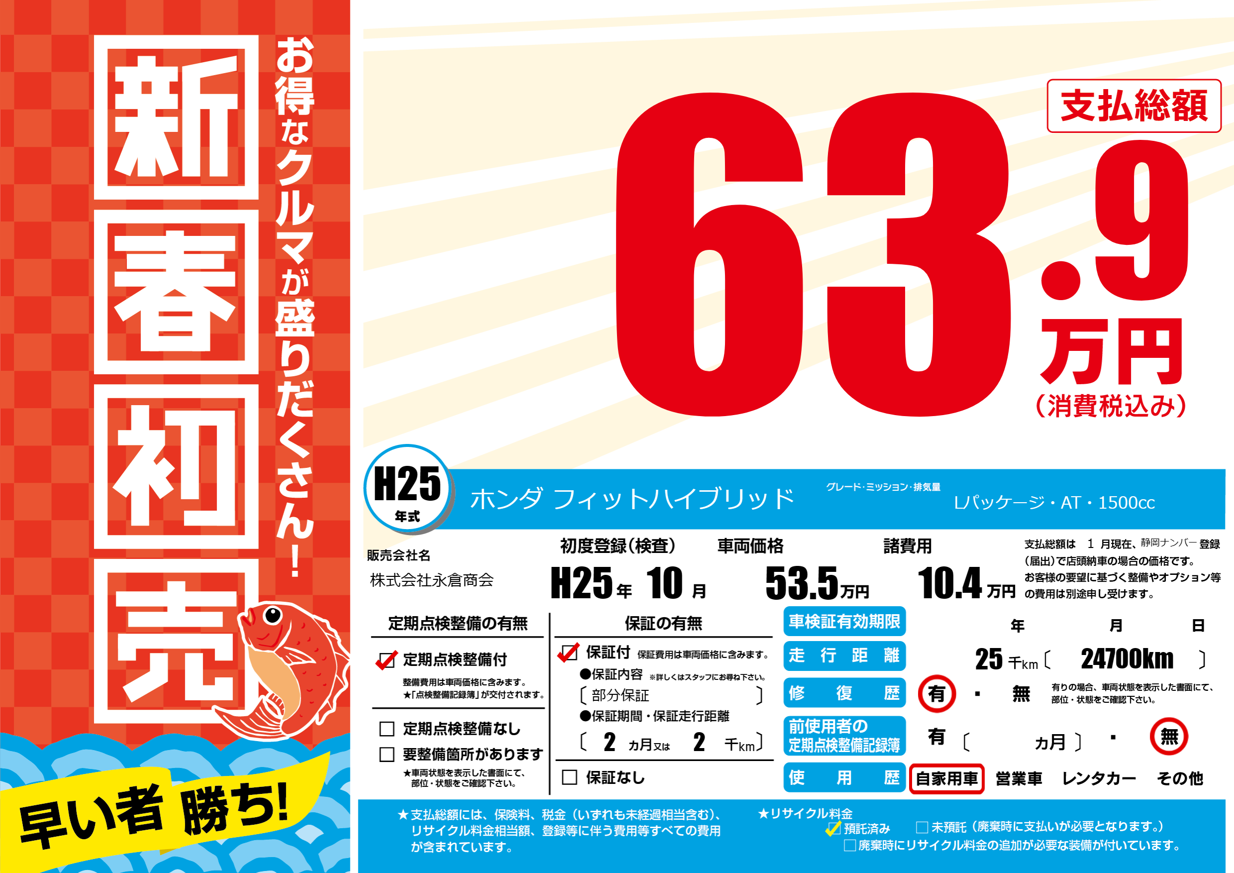 | 車名 | ホンダ フィットハイブリッド | グレード ミッション 排気量 |