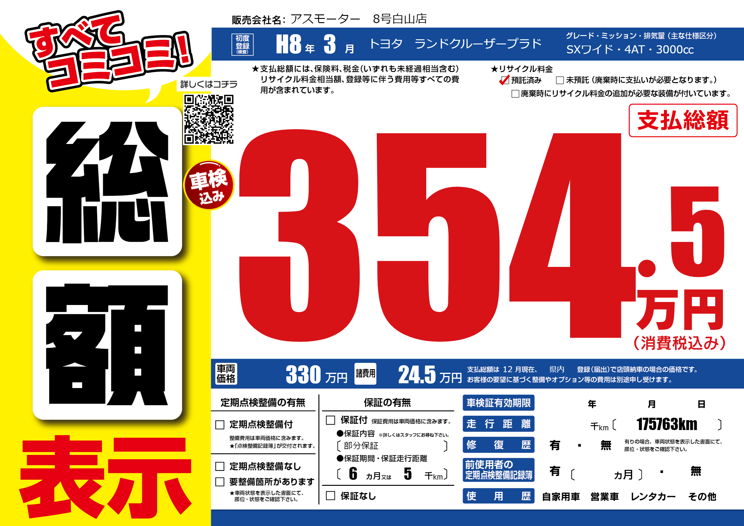 | 走行キロ | - | 初年度登録 | H8年3月 |