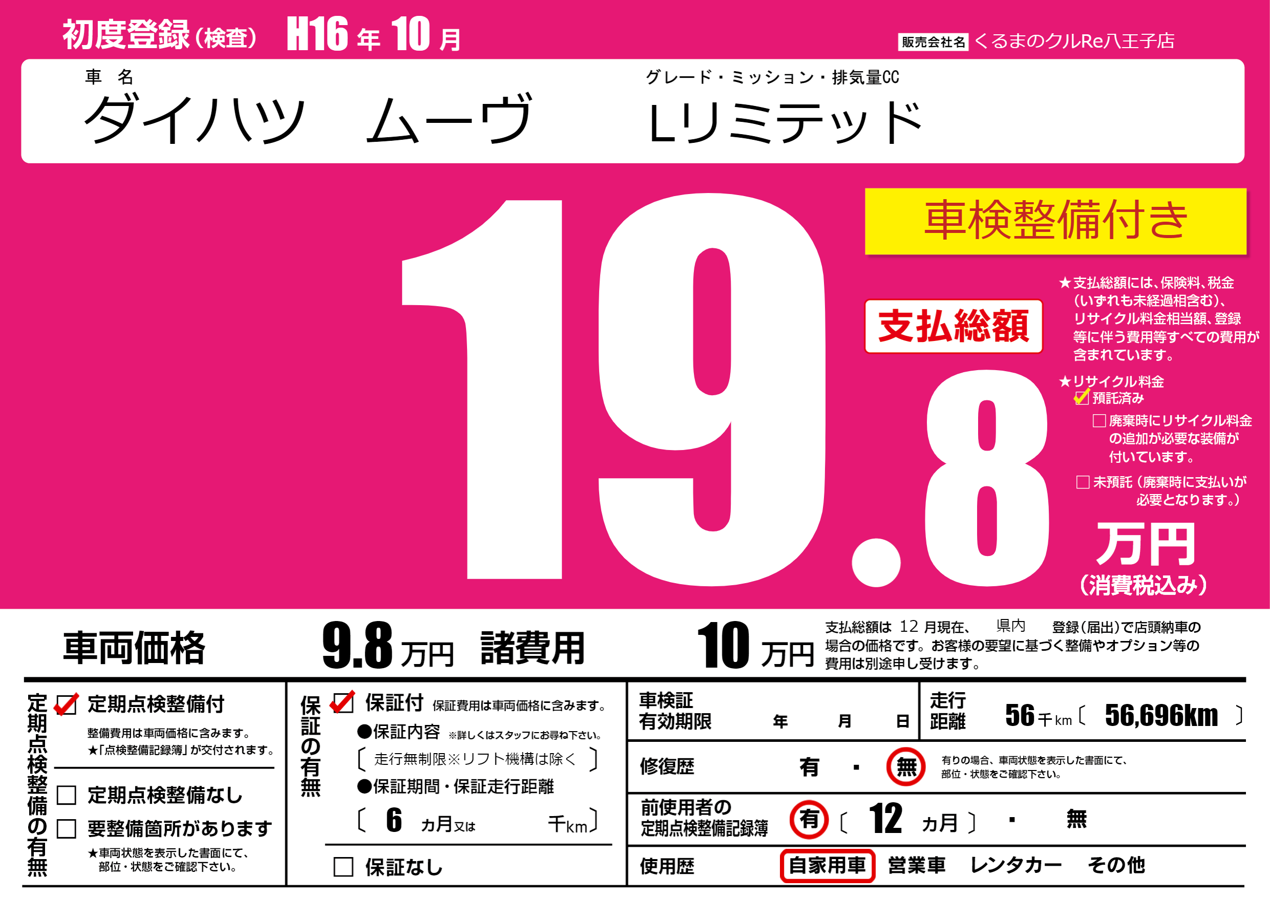 保証内容(走行無制限※リフト機構は除く) 6ヶ月または千km