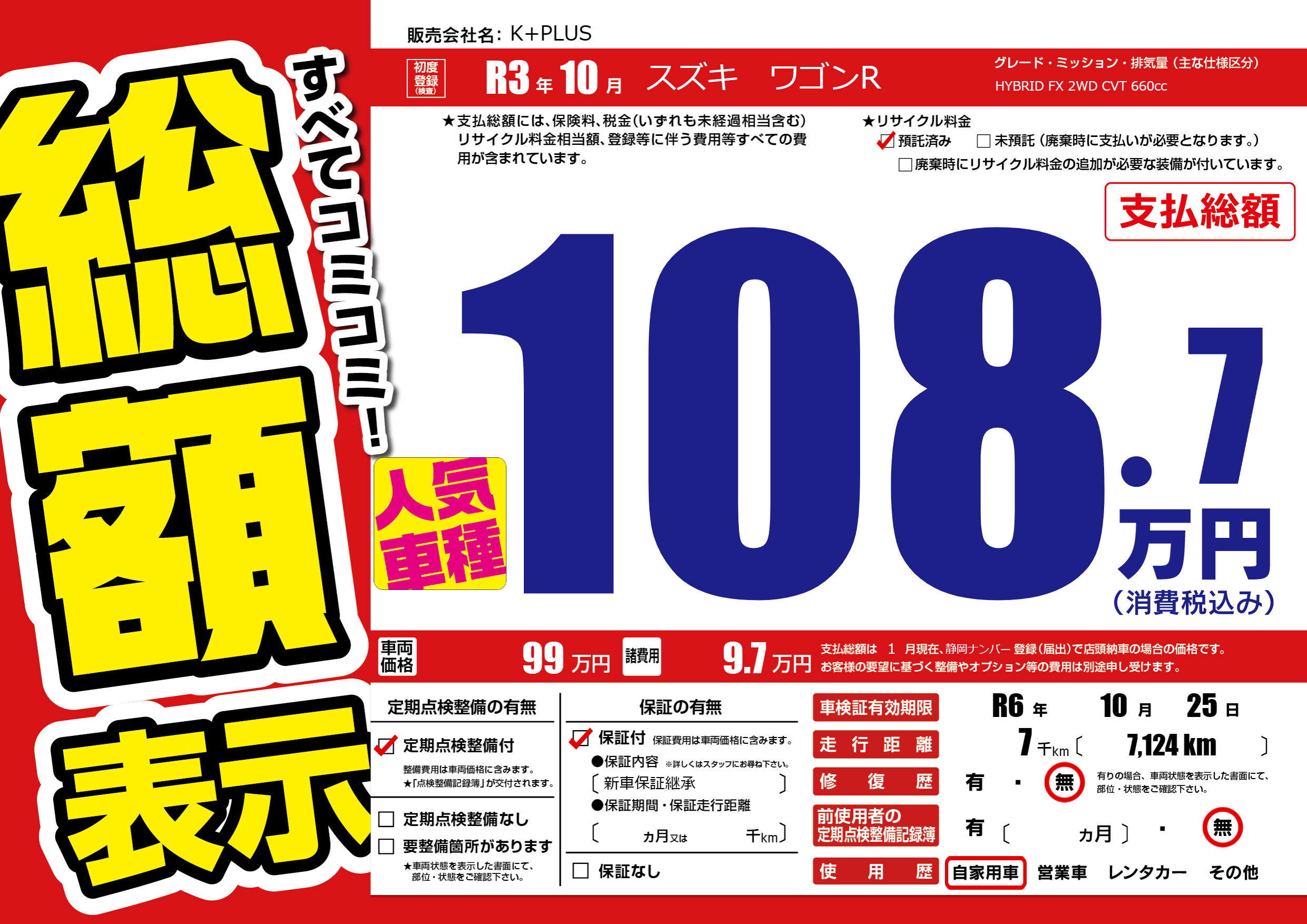 | 車検制限 | R6年 10月 25日 | ||