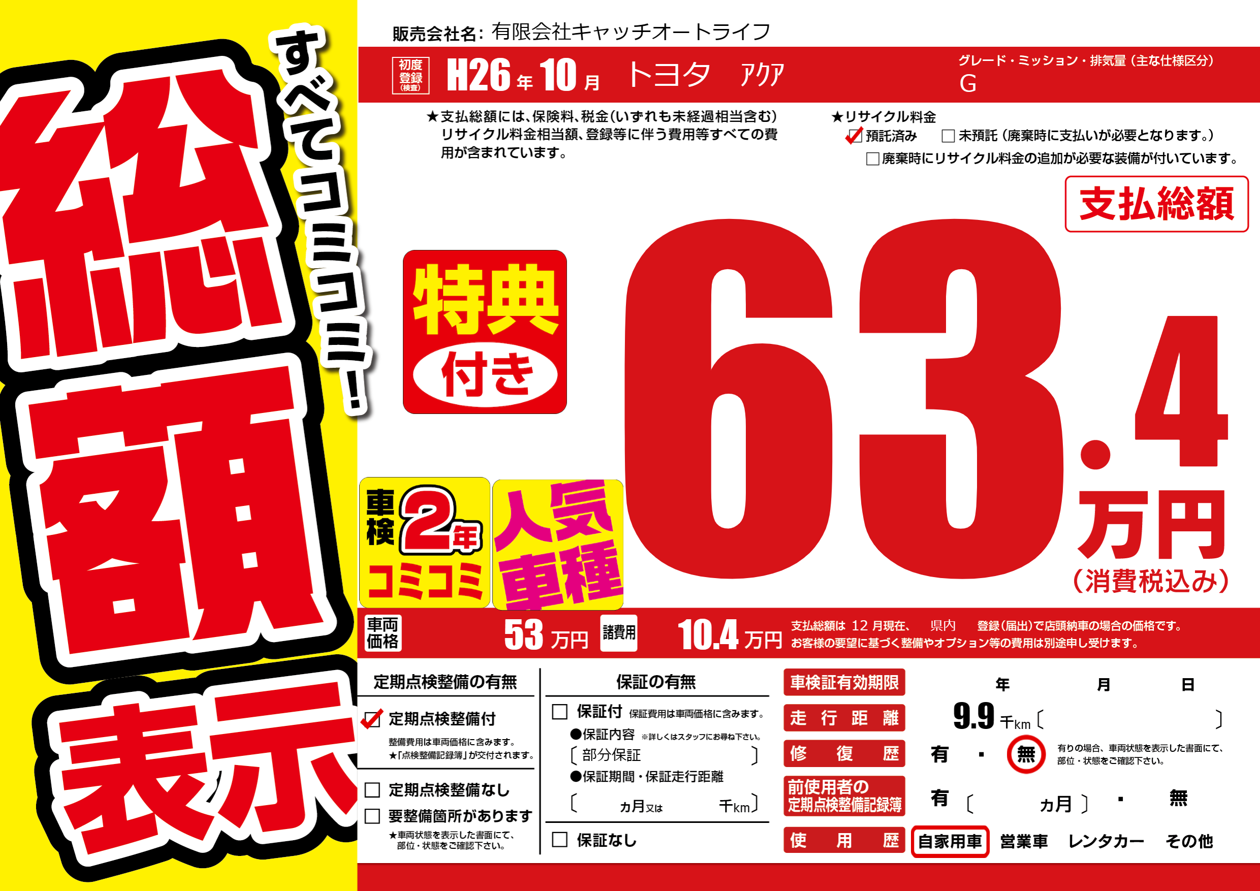 | 定期点検整備 | 定期点検整備あり | ||
