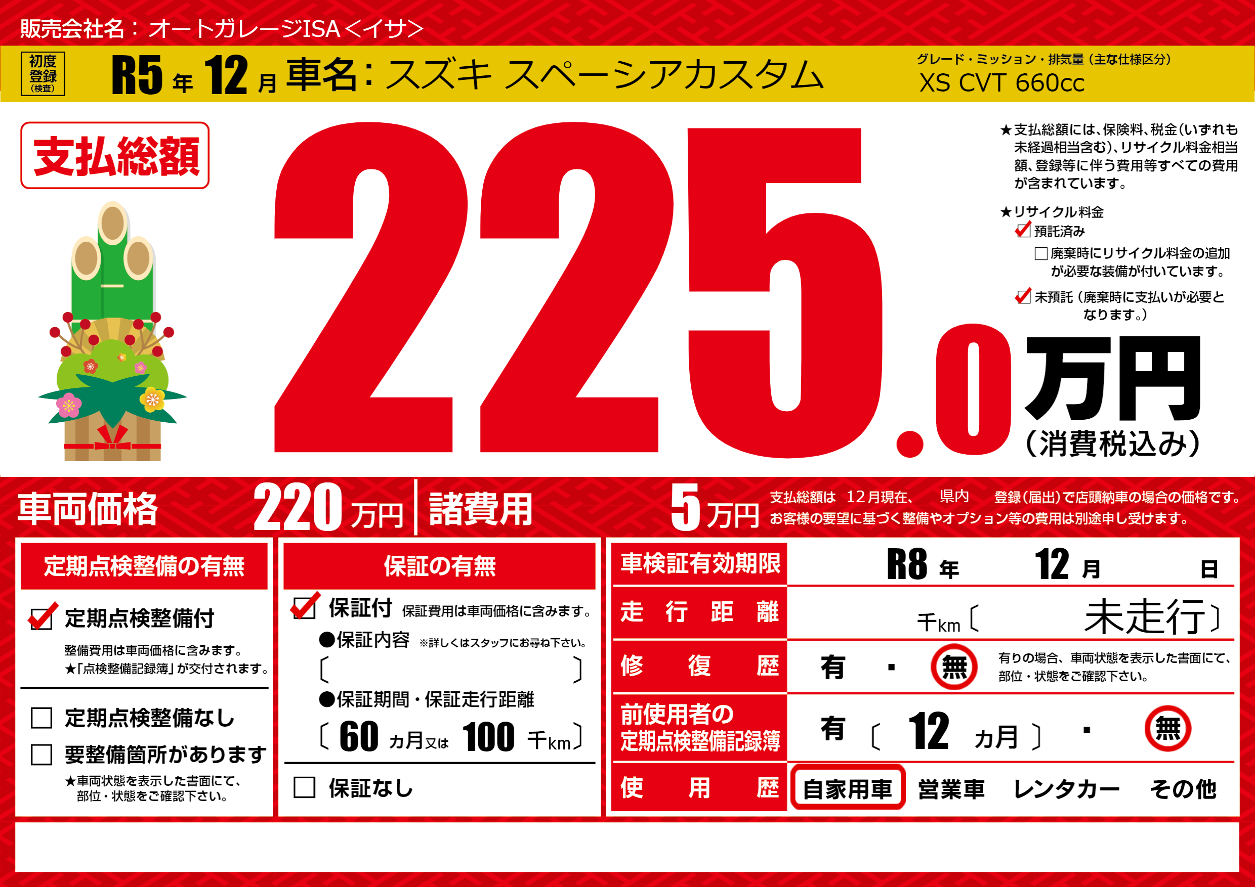 なし | 車検制限 | R8年12月---月 |