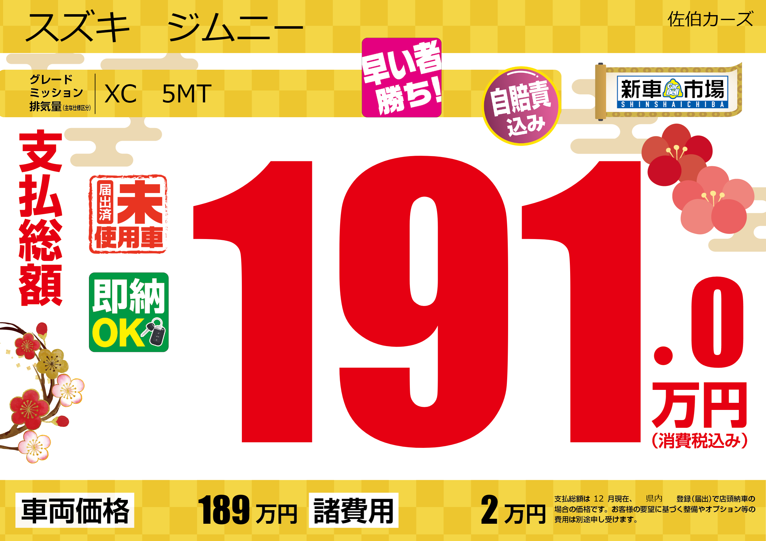 | 車名 | スズキ ジムニー | グレード ミッション 排気量 |