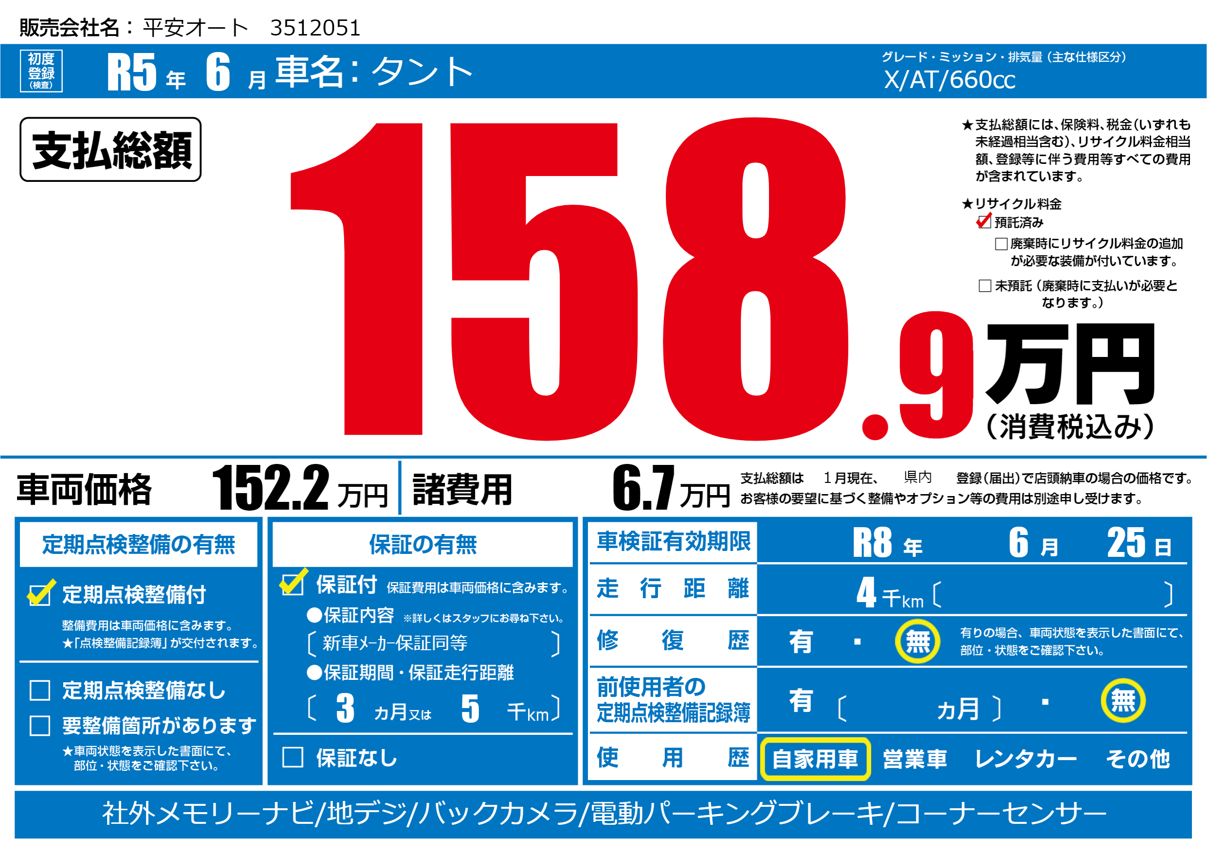 | 走行キロ | 0.4万km | 初年度登録 | R5年6月 |