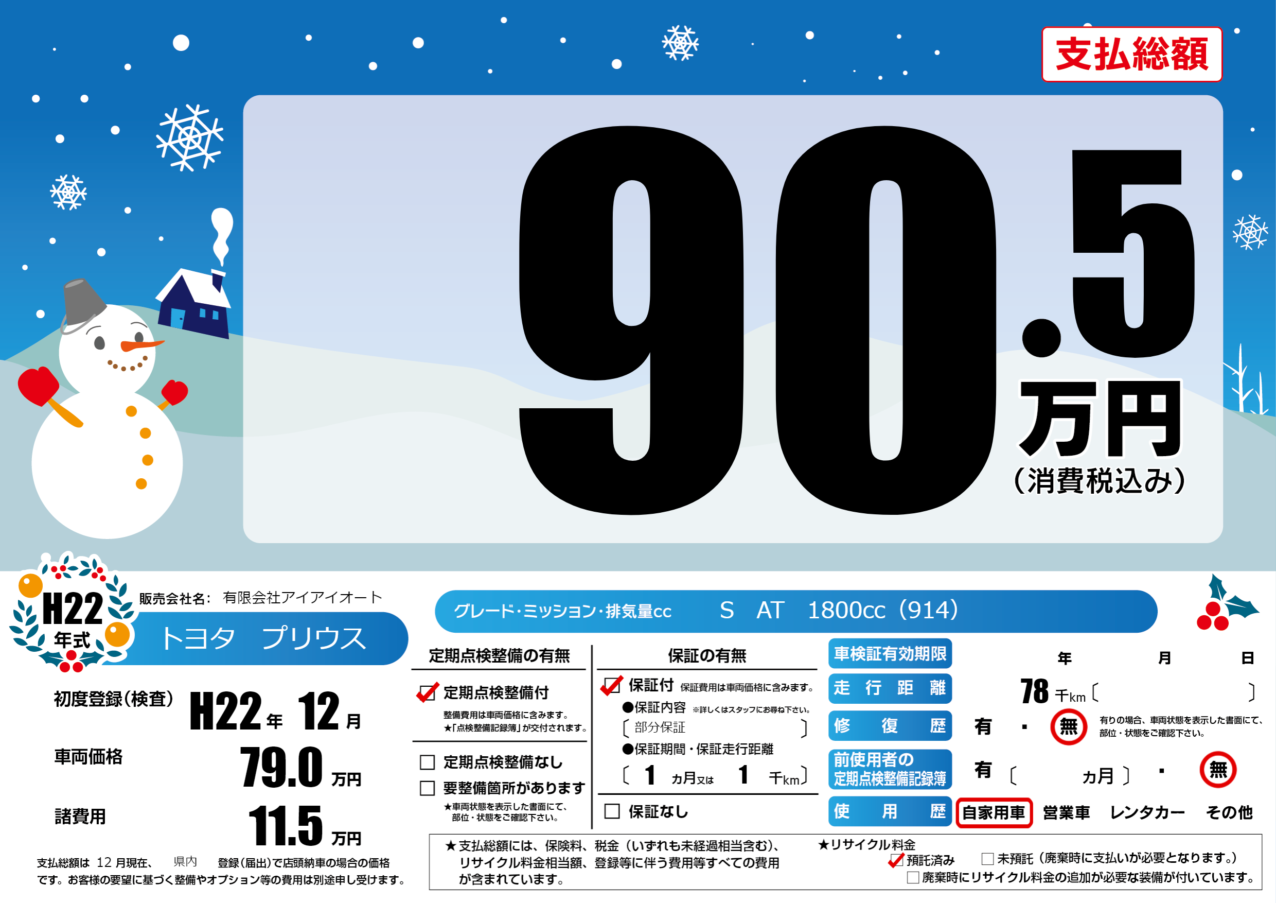 | 車名 | トヨタ プリウス | グレード ミッション 排気量 |