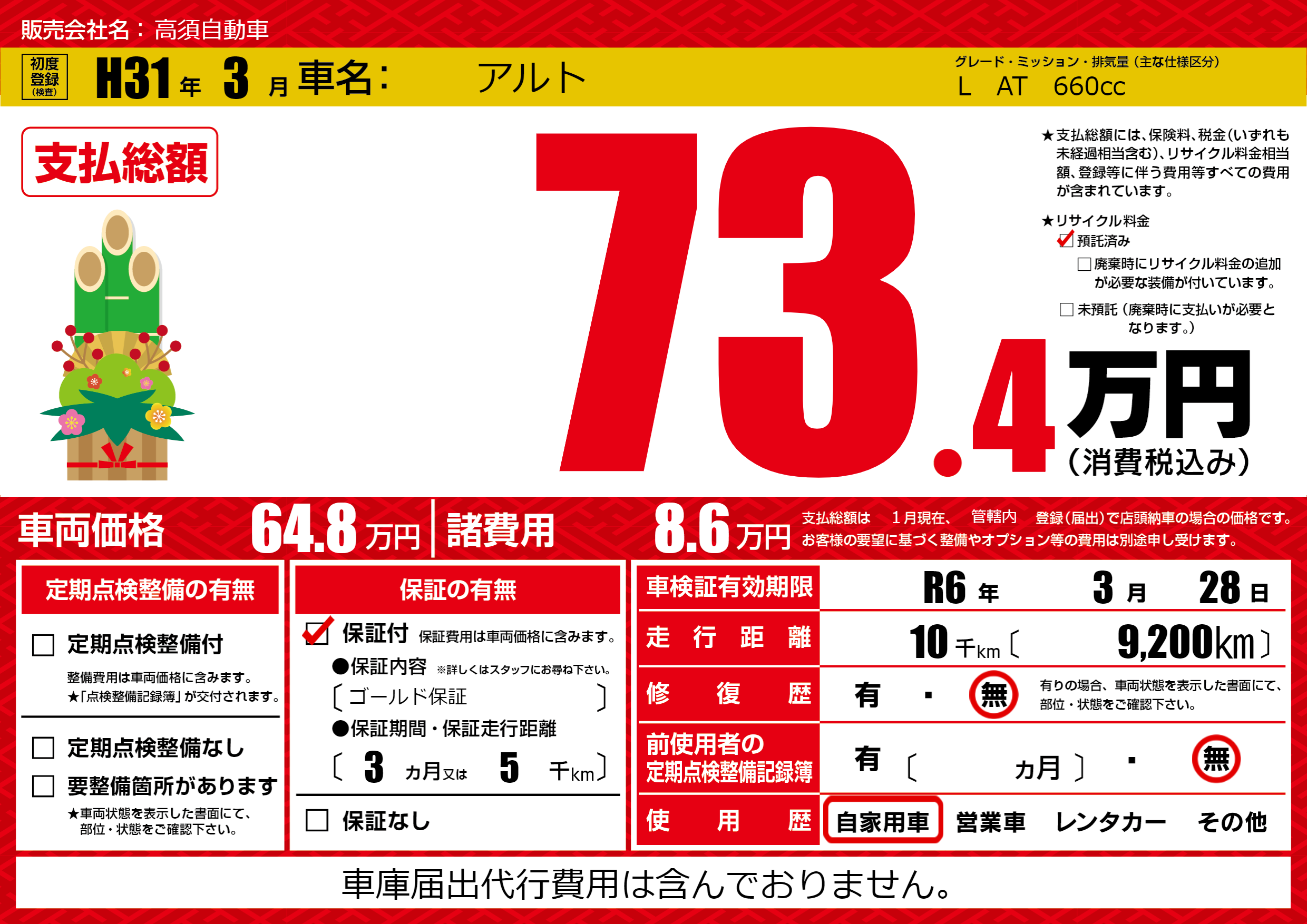 保証なし 保証内容(ゴールド保証) 3ヶ月または(5)千kmまで |