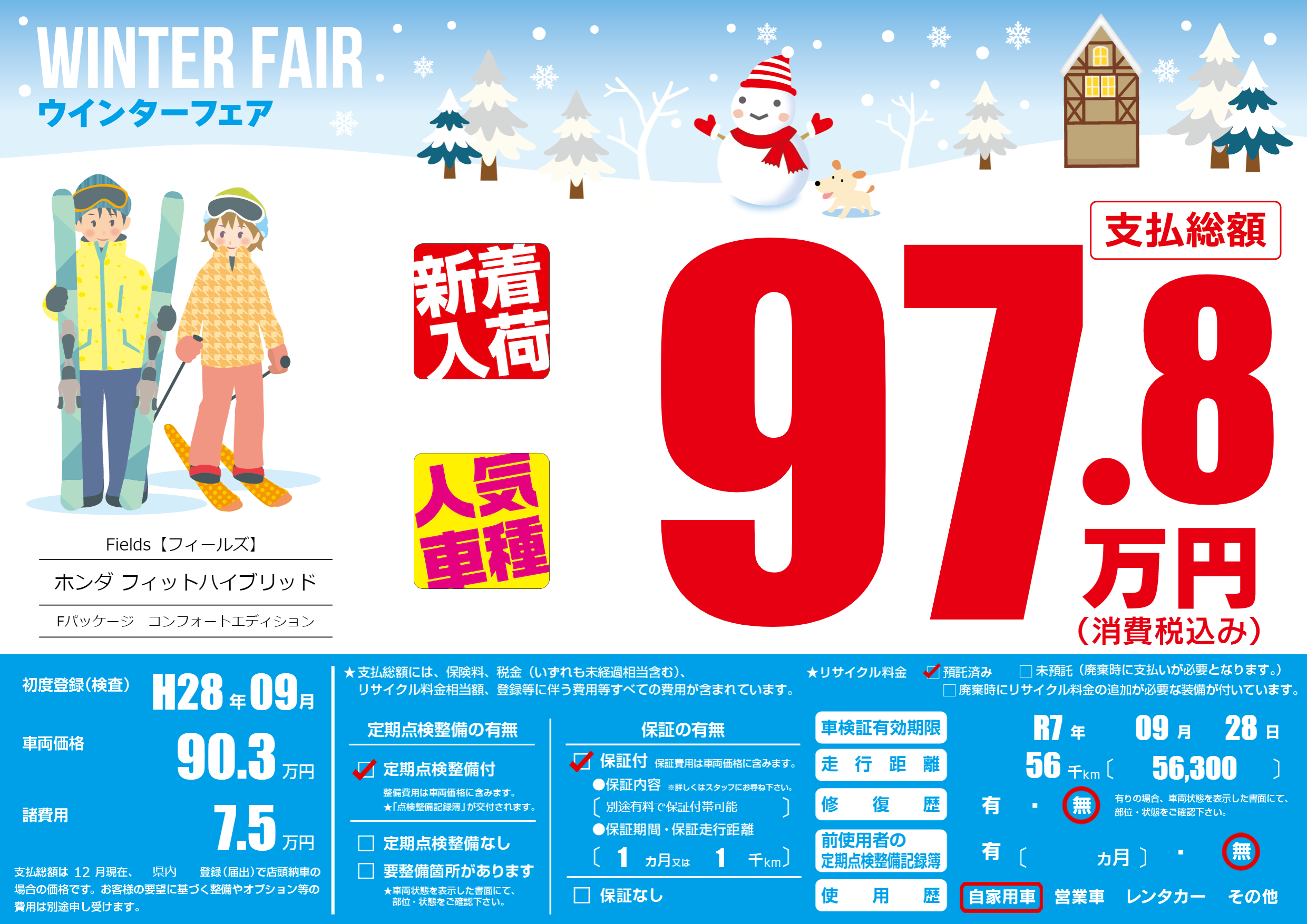 | 車名 | ホンダ フィットハイブリッド | グレード ミッション 排気量 |