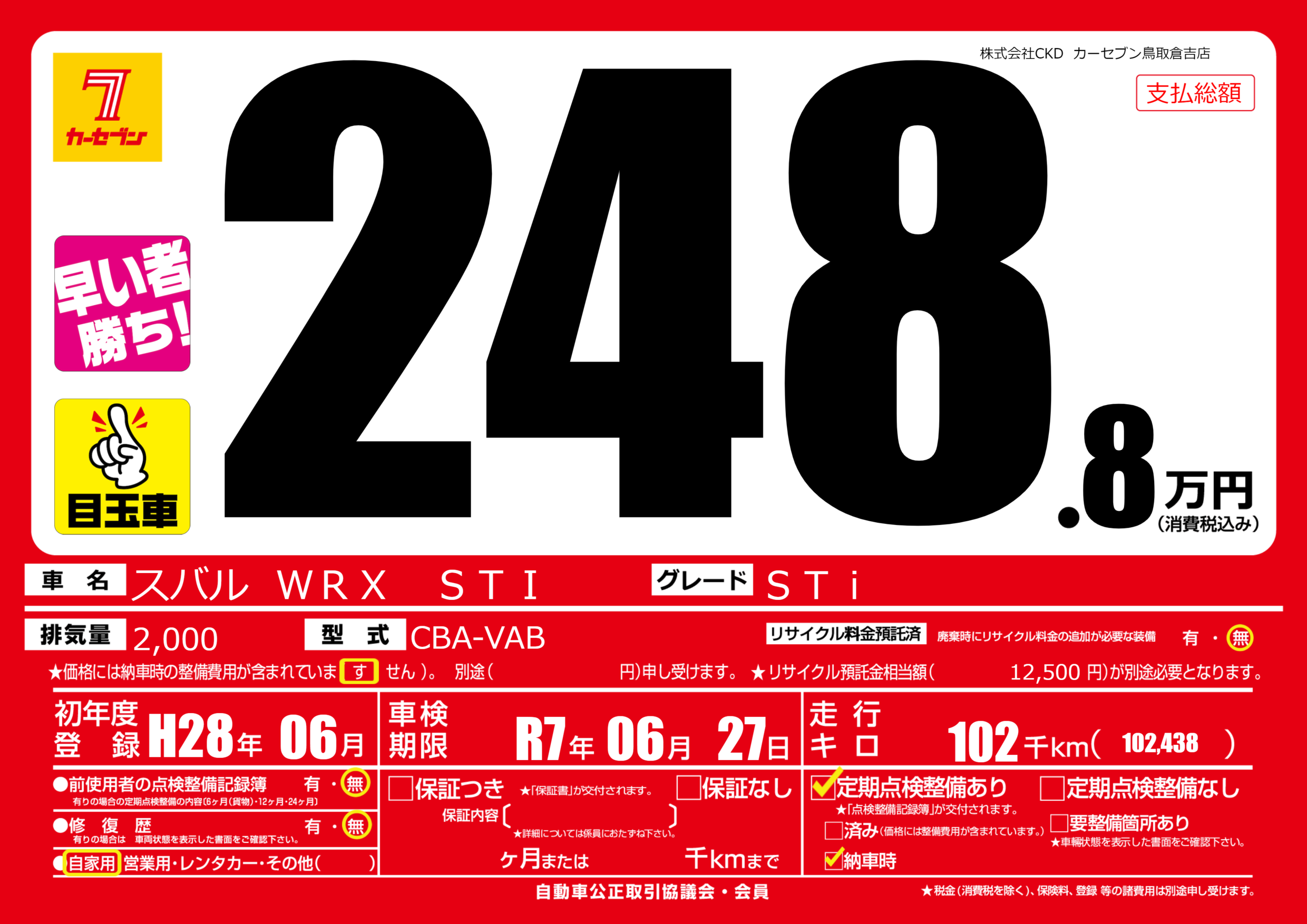 | 車検制限 | R7年 06月 27日 | ||