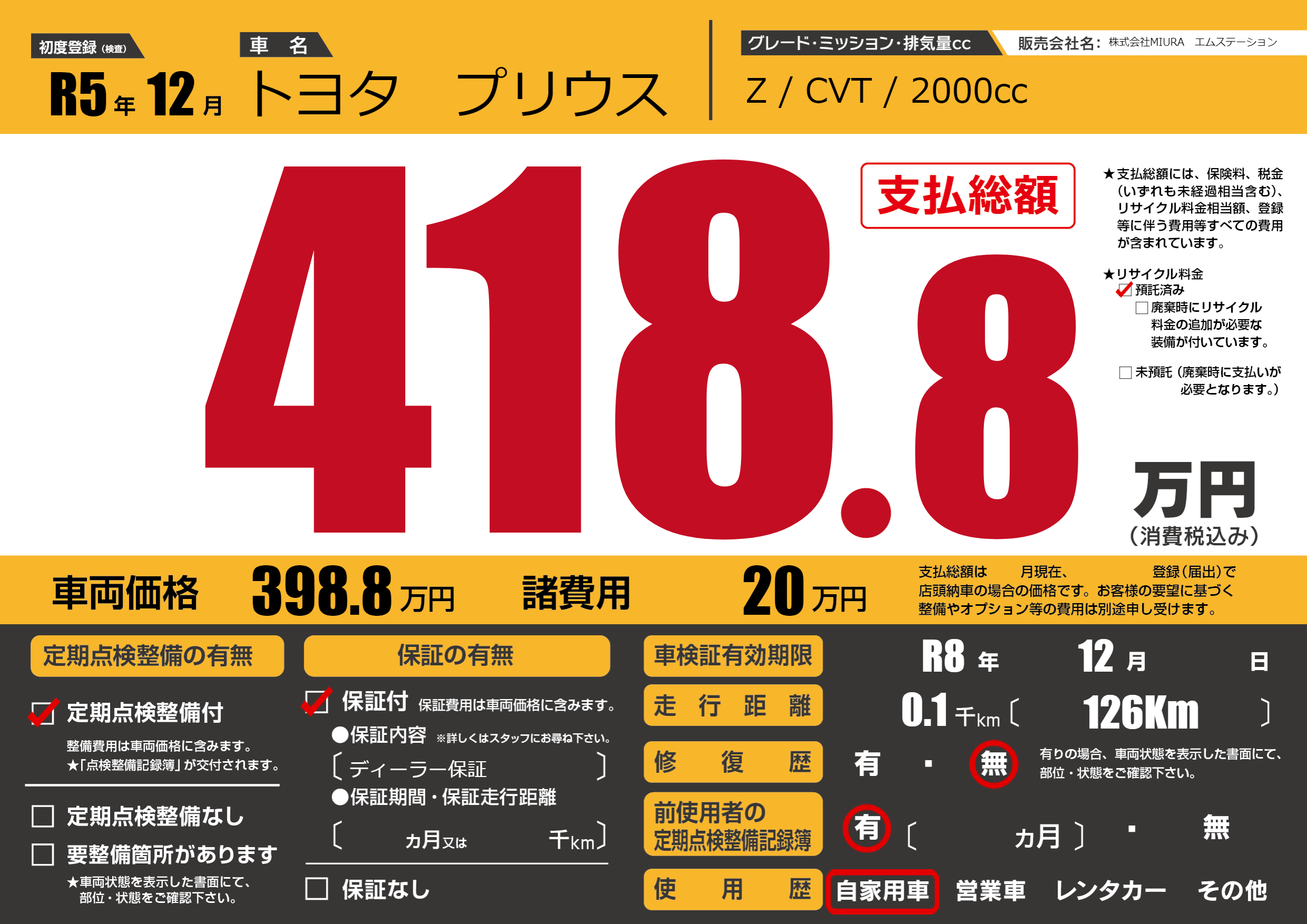 なし | 車検制限 | R8年12月---月 |