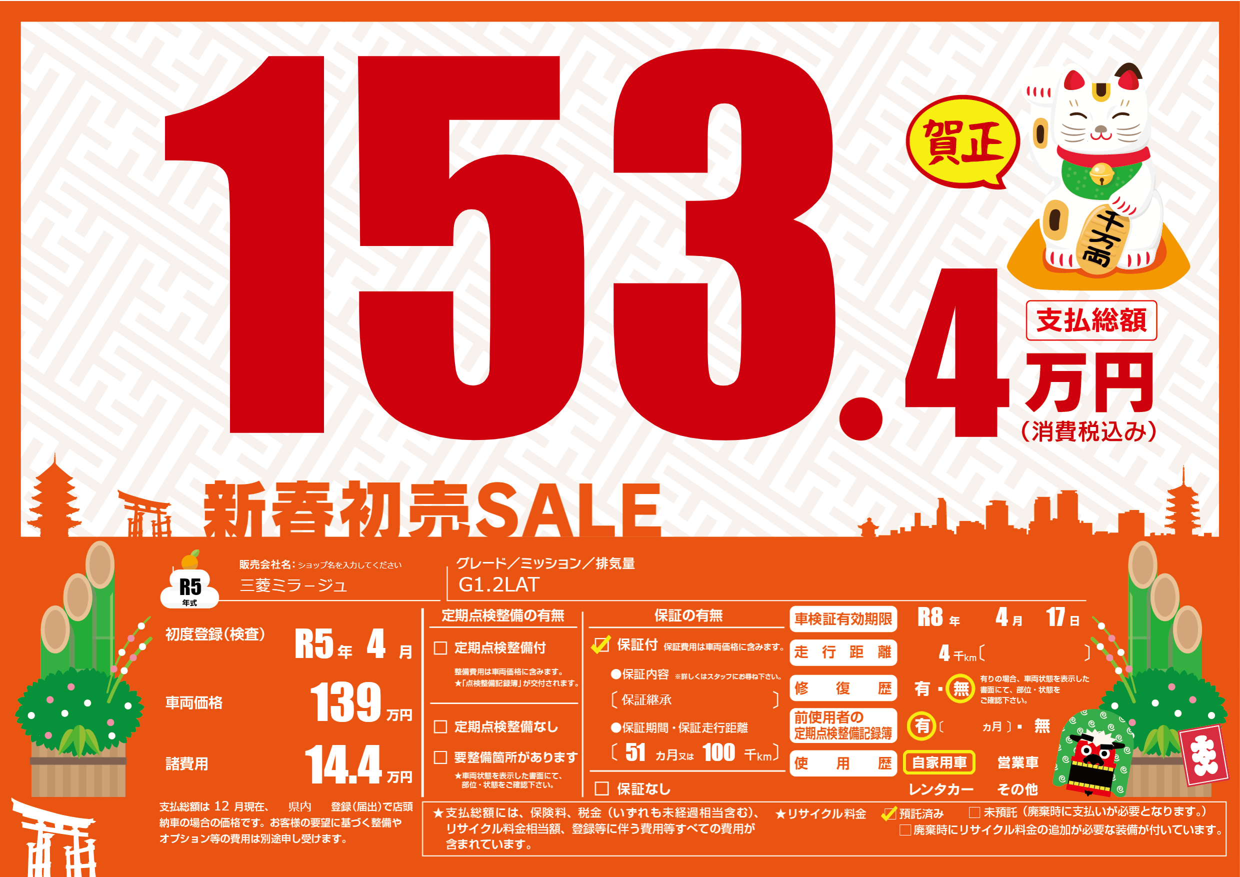保証付き 保証内容(保証継承) 51ヶ月または(100)千kmまで |