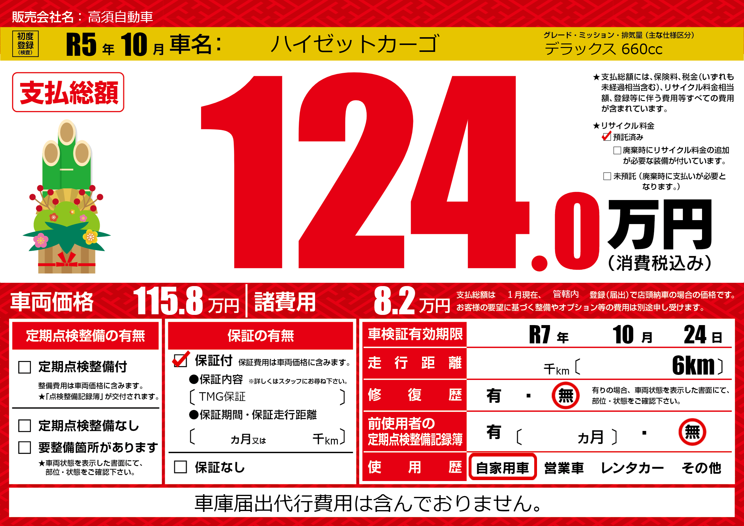 なし | 車検制限 | R7年10月24月 |