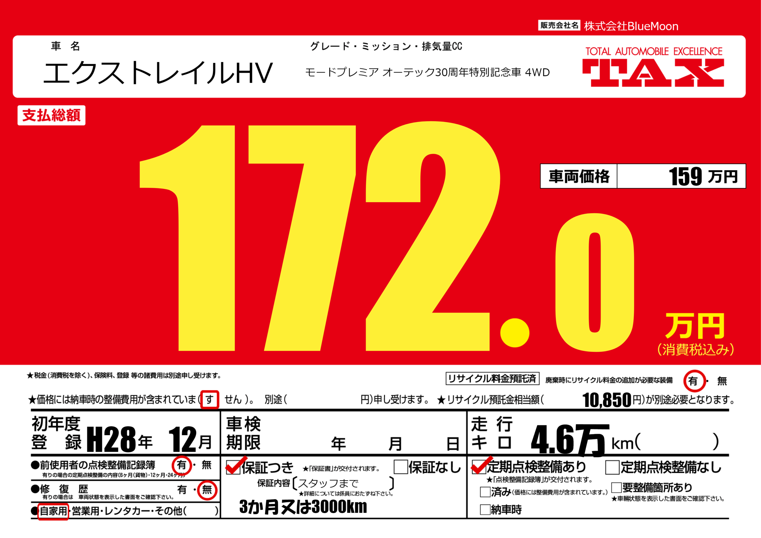 | 車名 | エクストレイルHV | グレード ミッション 排気量 |
