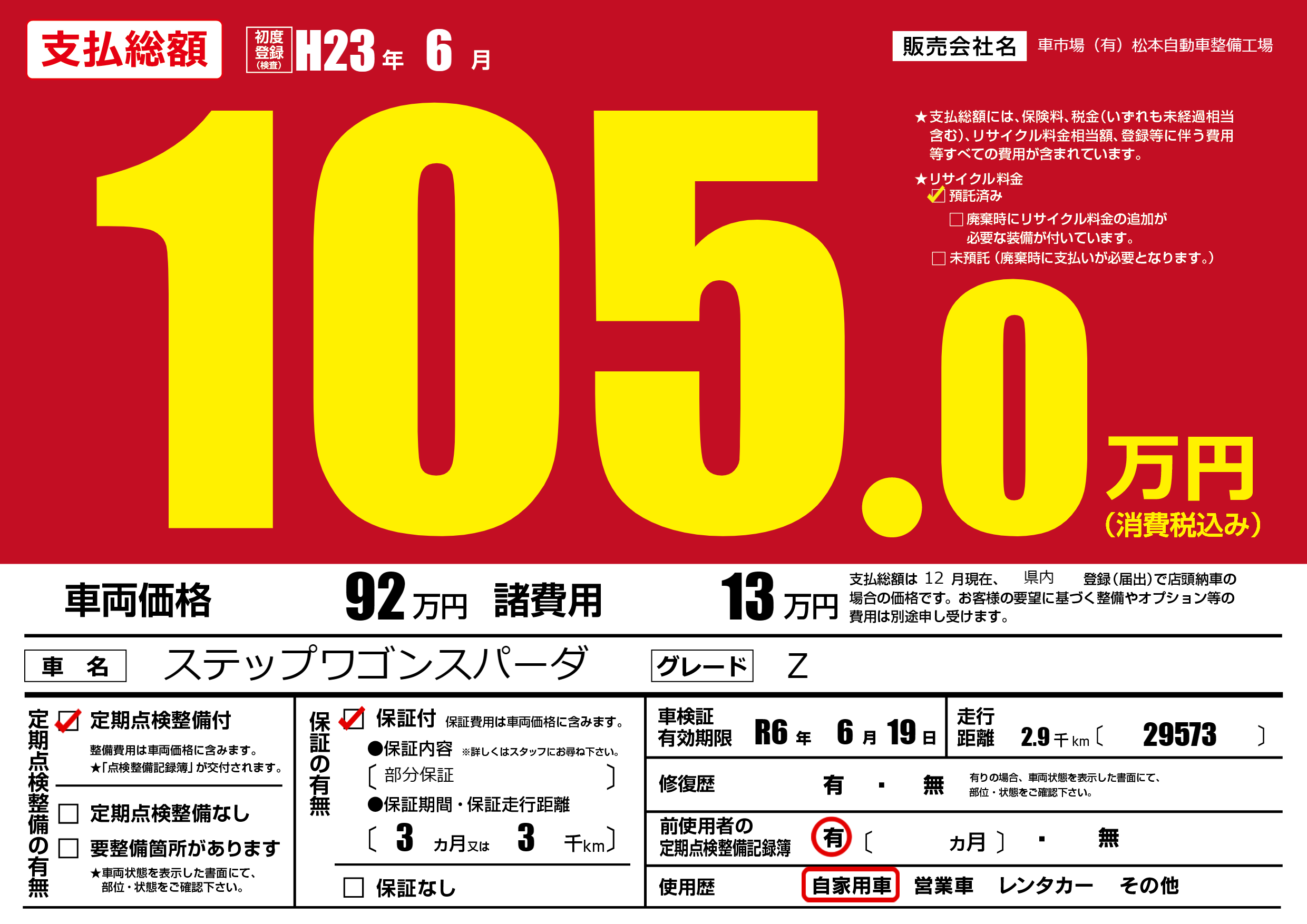 なし | 車検制限 | R6年6月19月 |