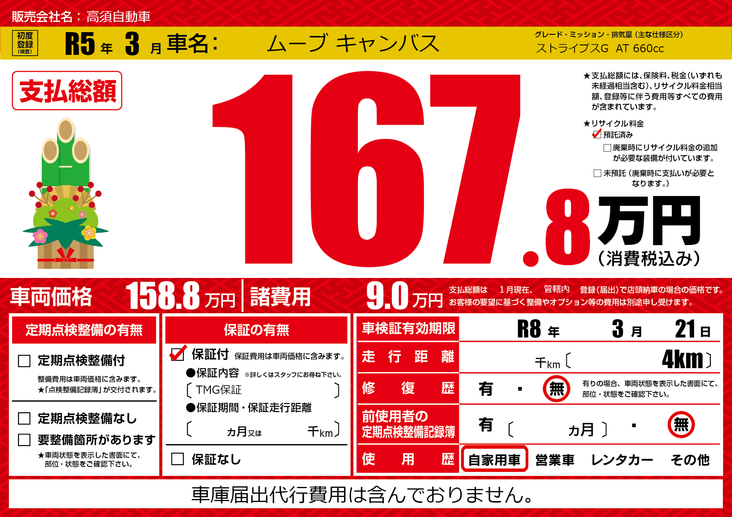 | 走行キロ | - | 初年度登録 | R5年3月 |
