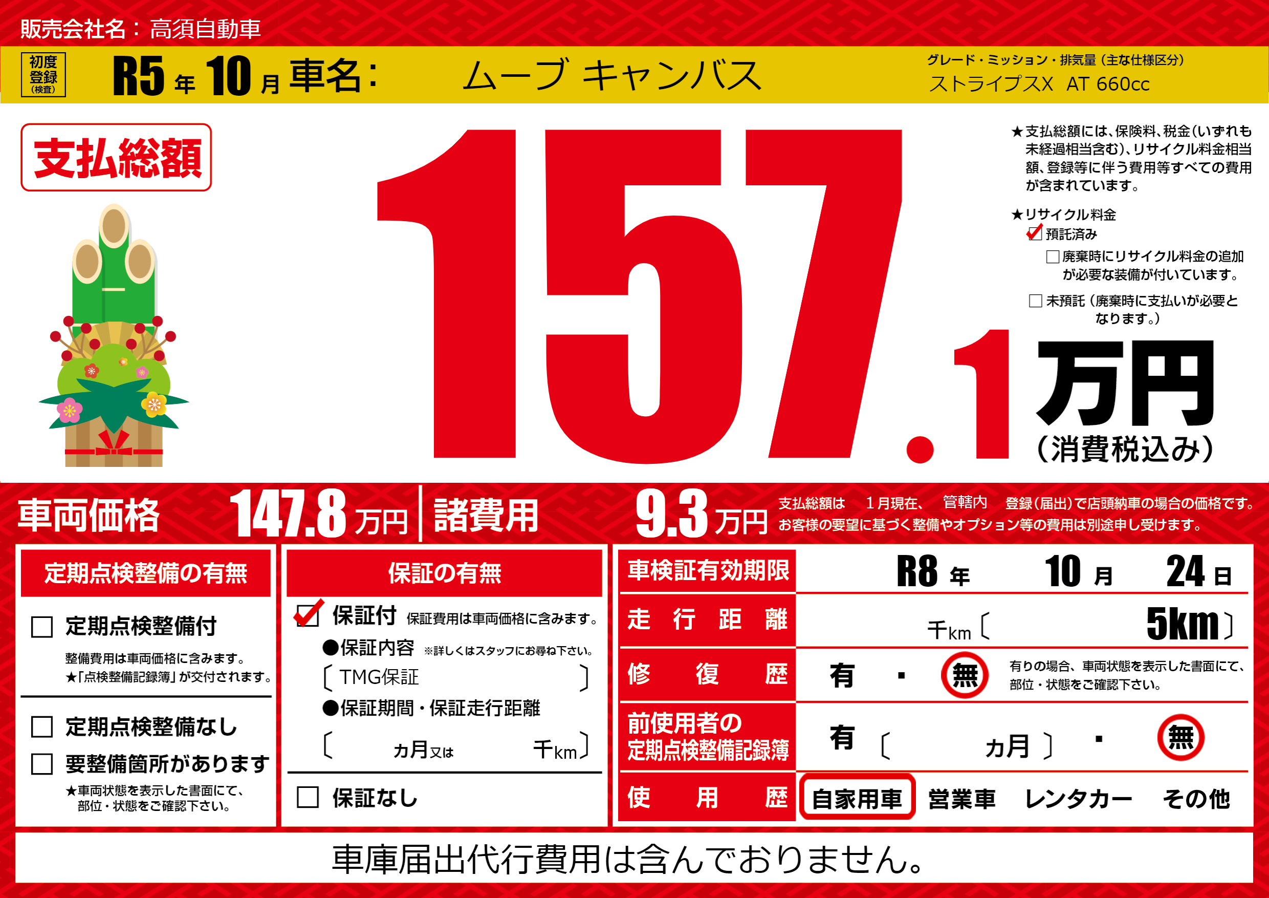 | 初年度登録 | R5年10月 | ||
