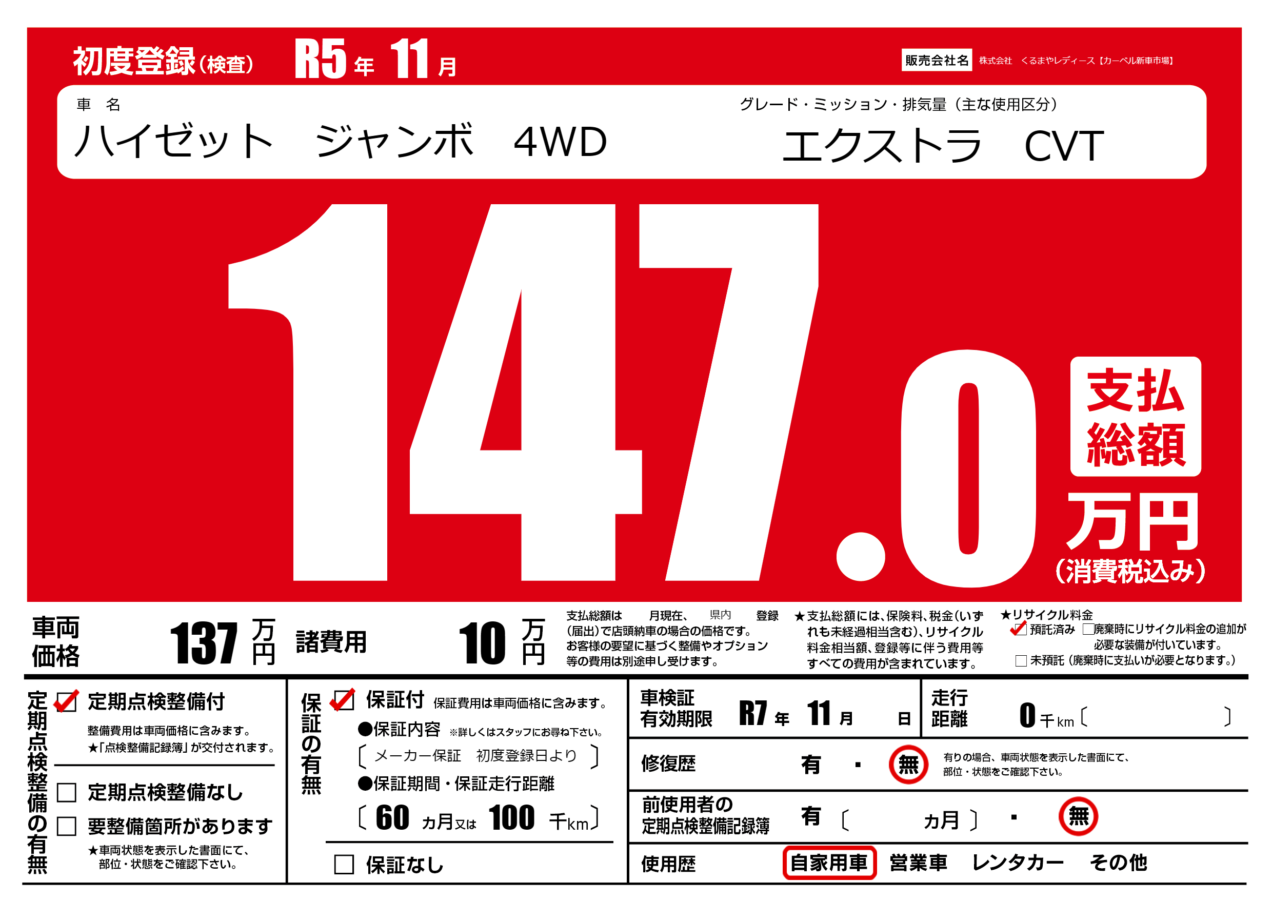| 走行キロ | - | 初年度登録 | R5年11月 |