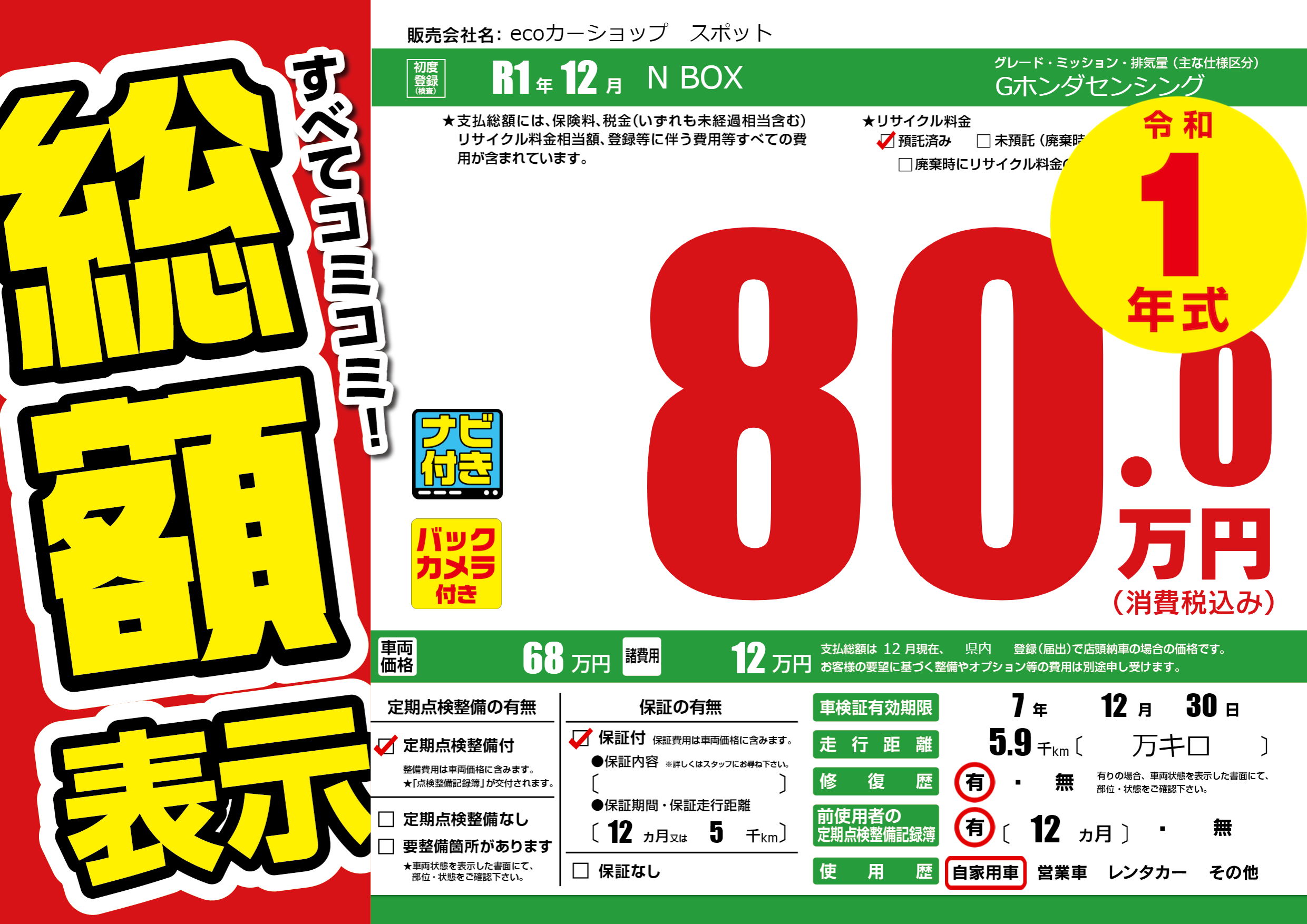 | 車名 | N BOX | グレード ミッション 排気量 |