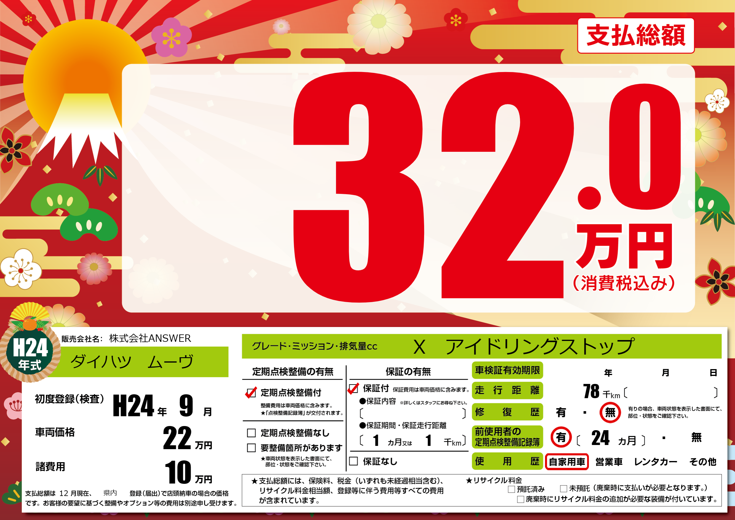 | 走行キロ | 7.8万km | 初年度登録 | H24年9月 |