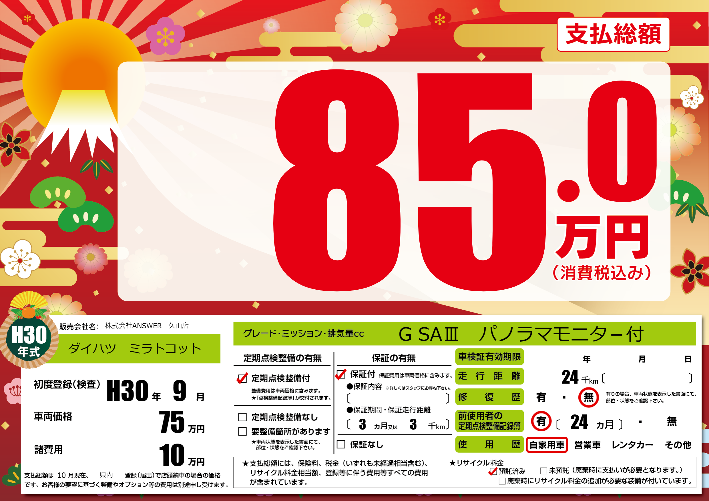初年度登録 H30年9月