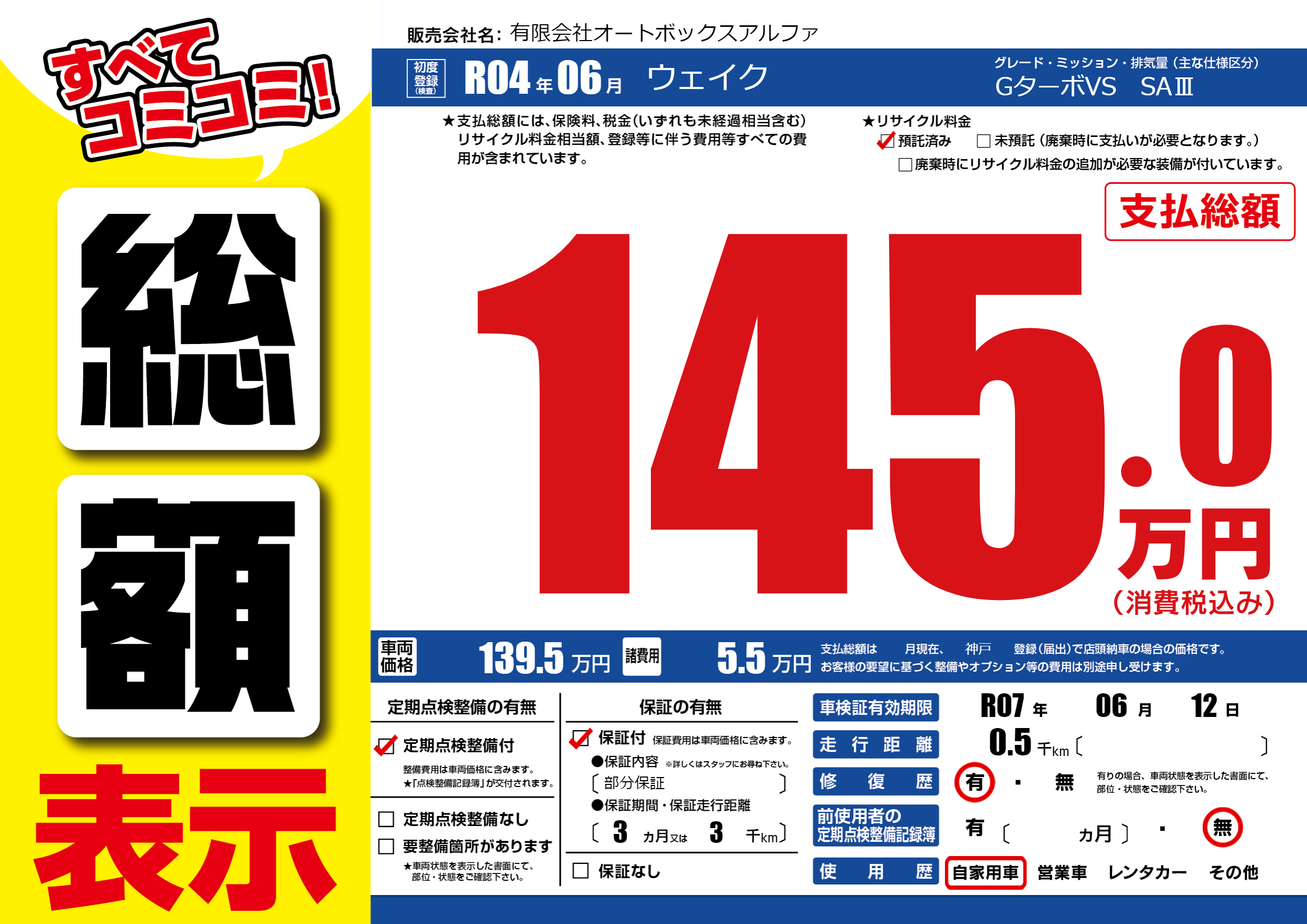 | 車検制限 | R07年 06月 12日 | ||