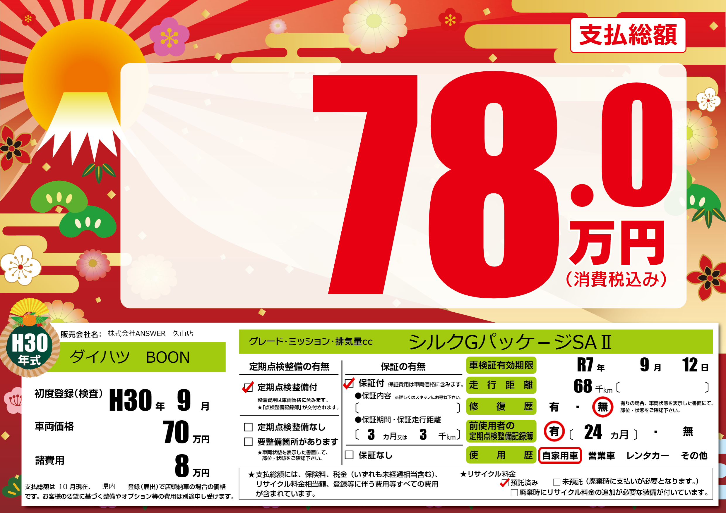 初年度登録 H30年9月