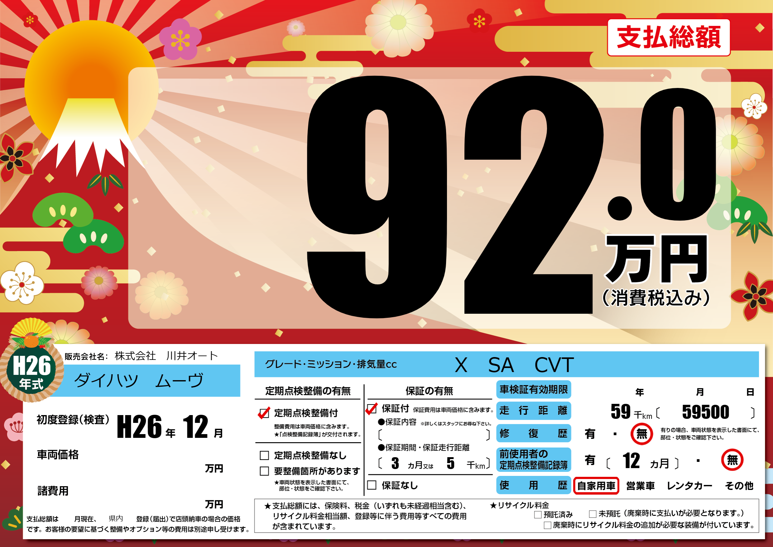 初年度登録 H26年12月