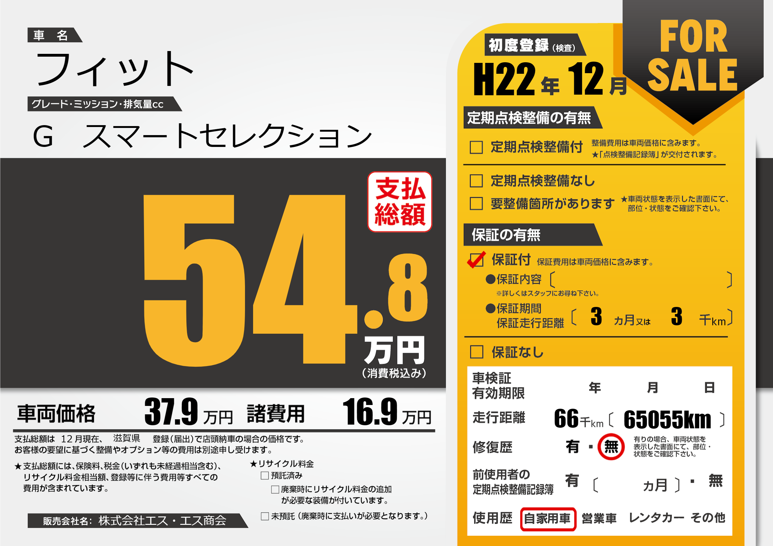 | 初年度登録 | H22年12月 | ||