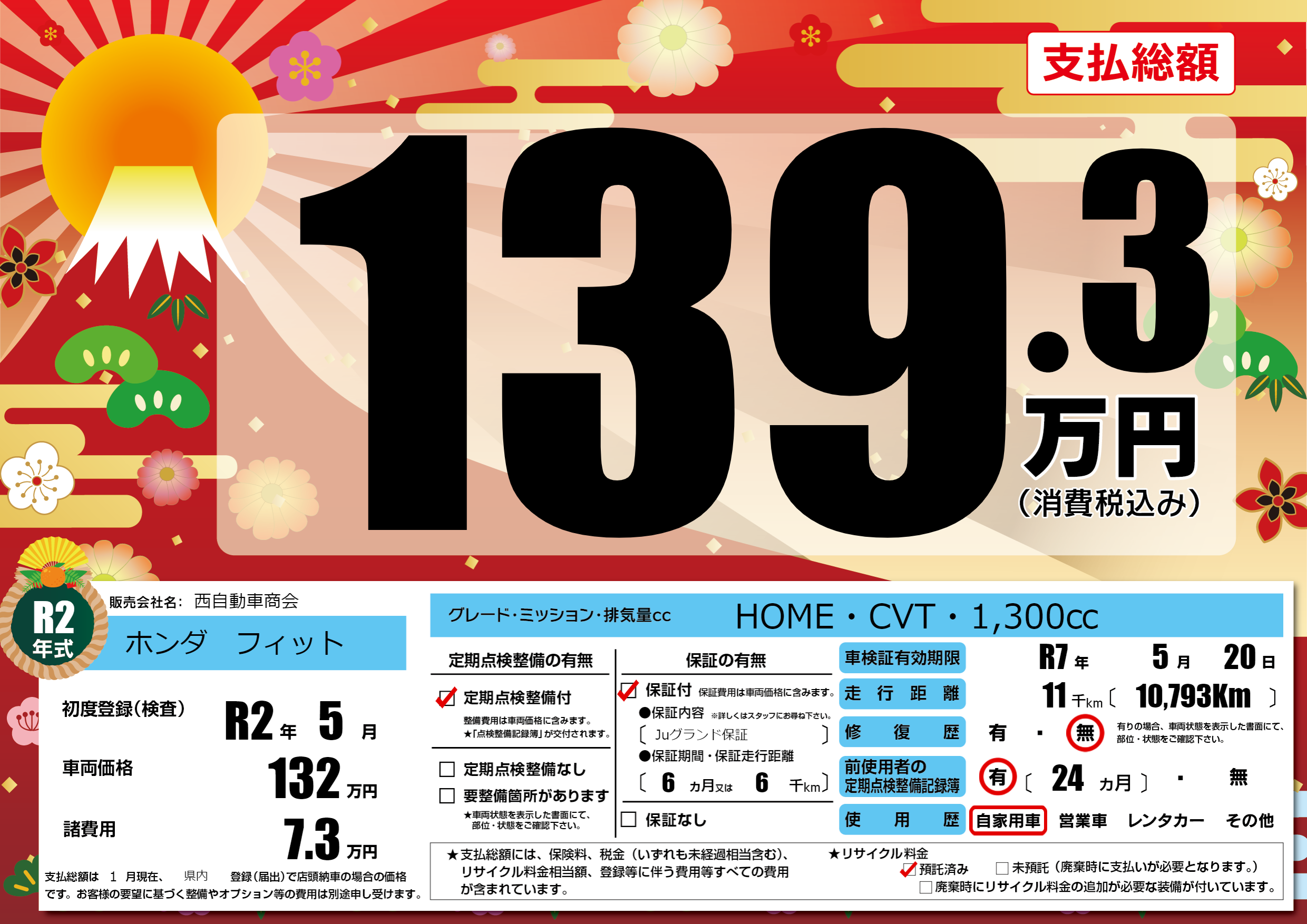 | 車名 | ホンダ フィット | グレード ミッション 排気量 |