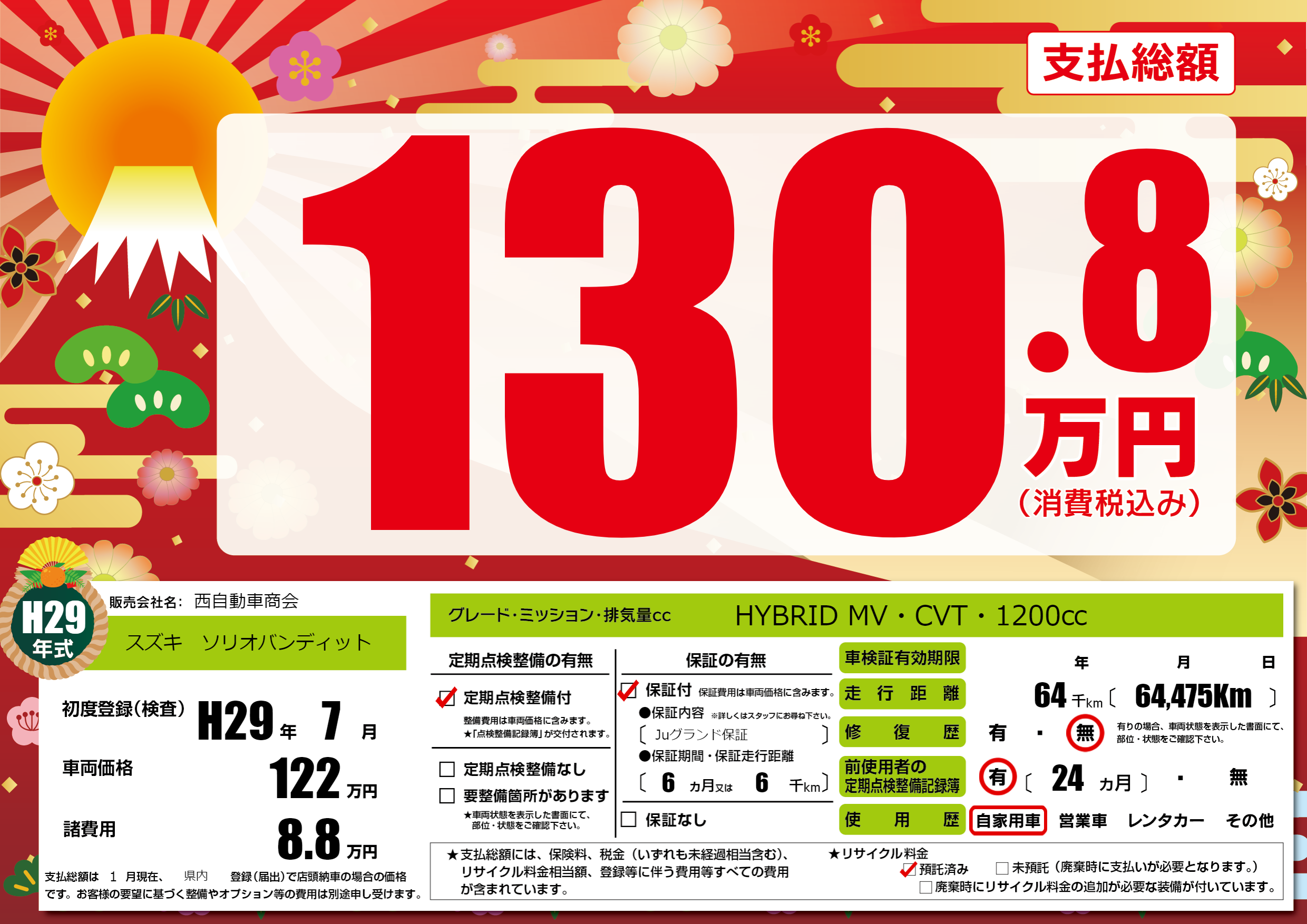| 車名 | スズキ ソリオバンディット | グレード ミッション 排気量 |