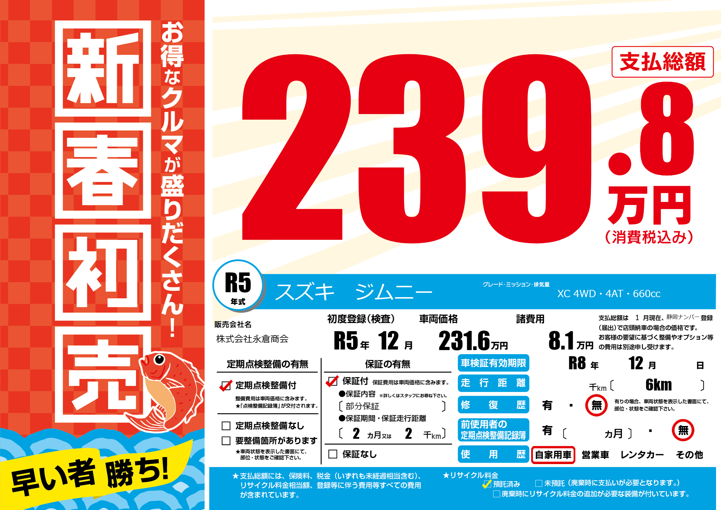 | 走行キロ | - | 初年度登録 | R5年12月 |