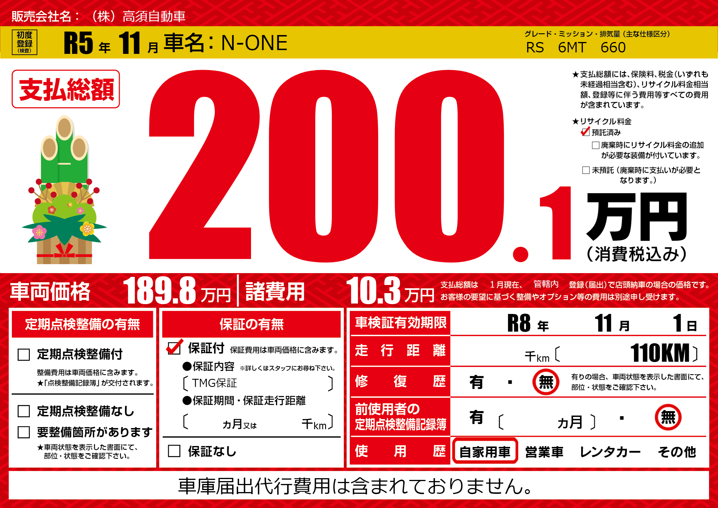保証付き 保証内容(TMG保証) ---ヶ月または()千kmまで |
