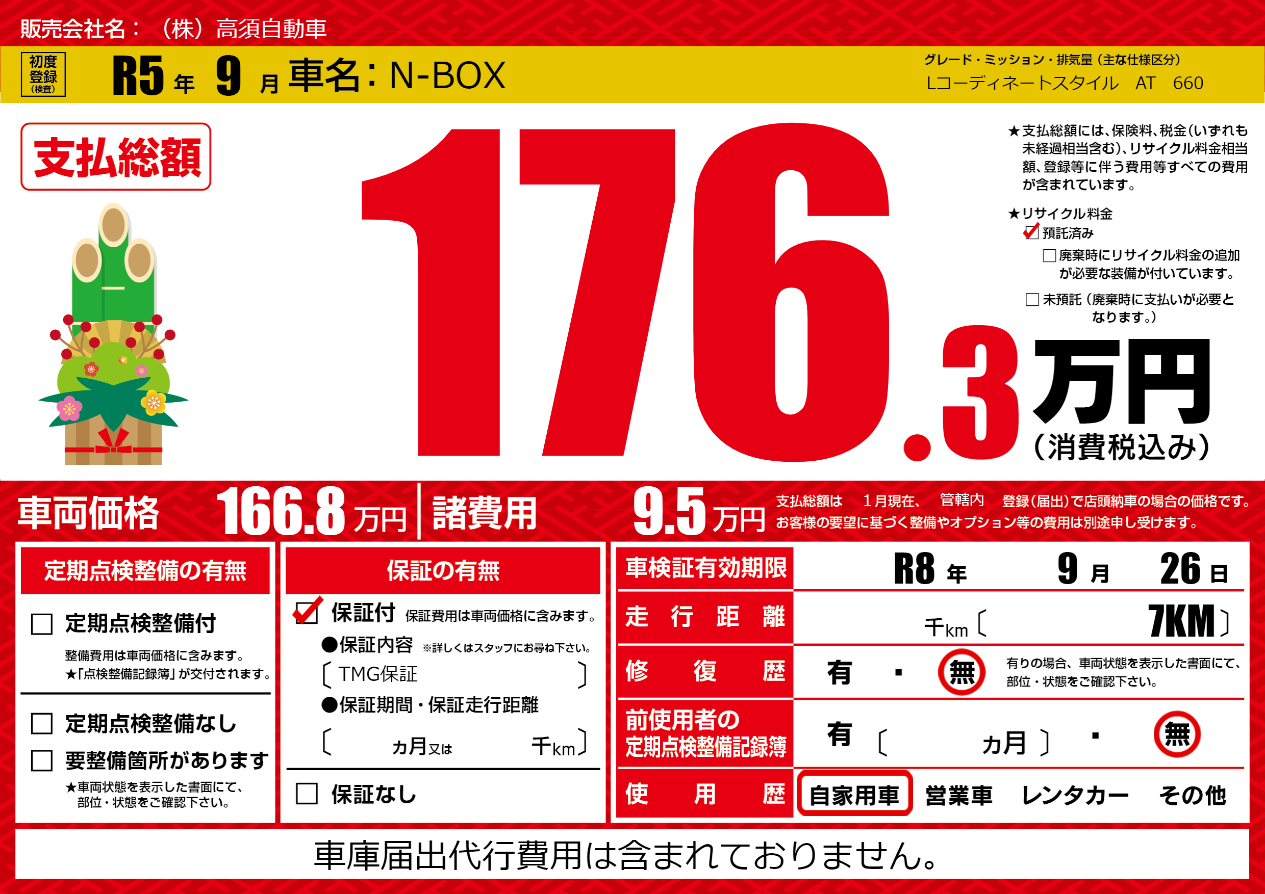 保証付き 保証内容(TMG保証) ---ヶ月または()千kmまで |