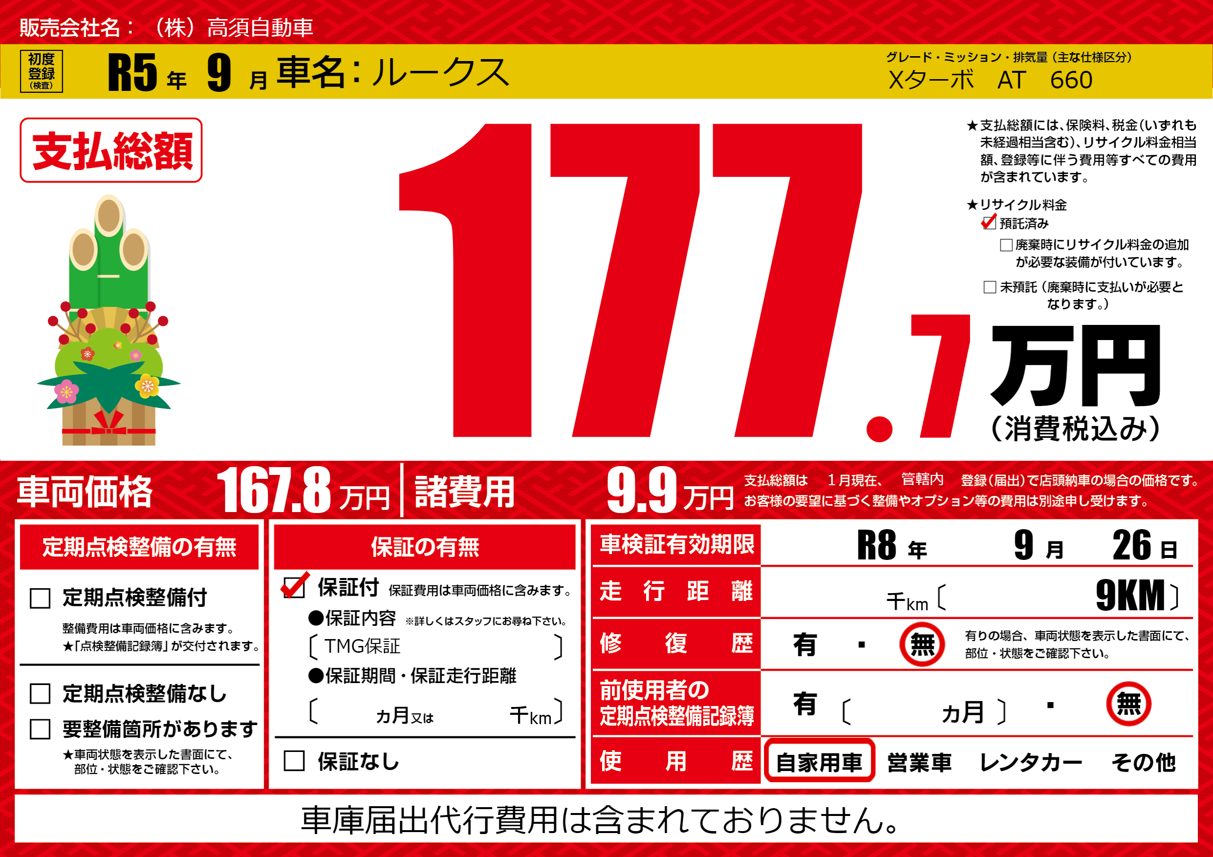 | 走行キロ | - | 初年度登録 | R5年9月 |