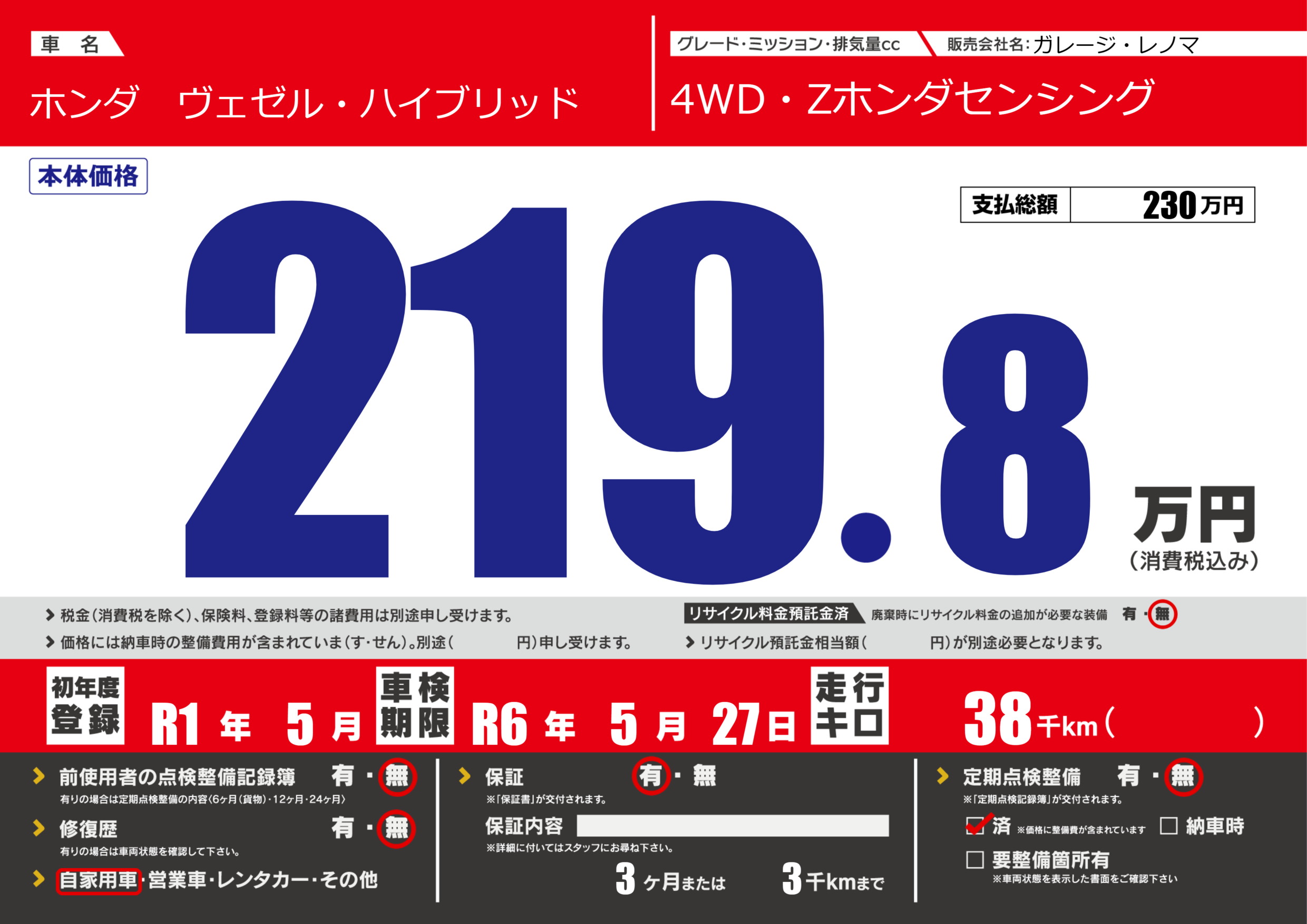 | 走行キロ | 3.8万km | 初年度登録 | R1年5月 |