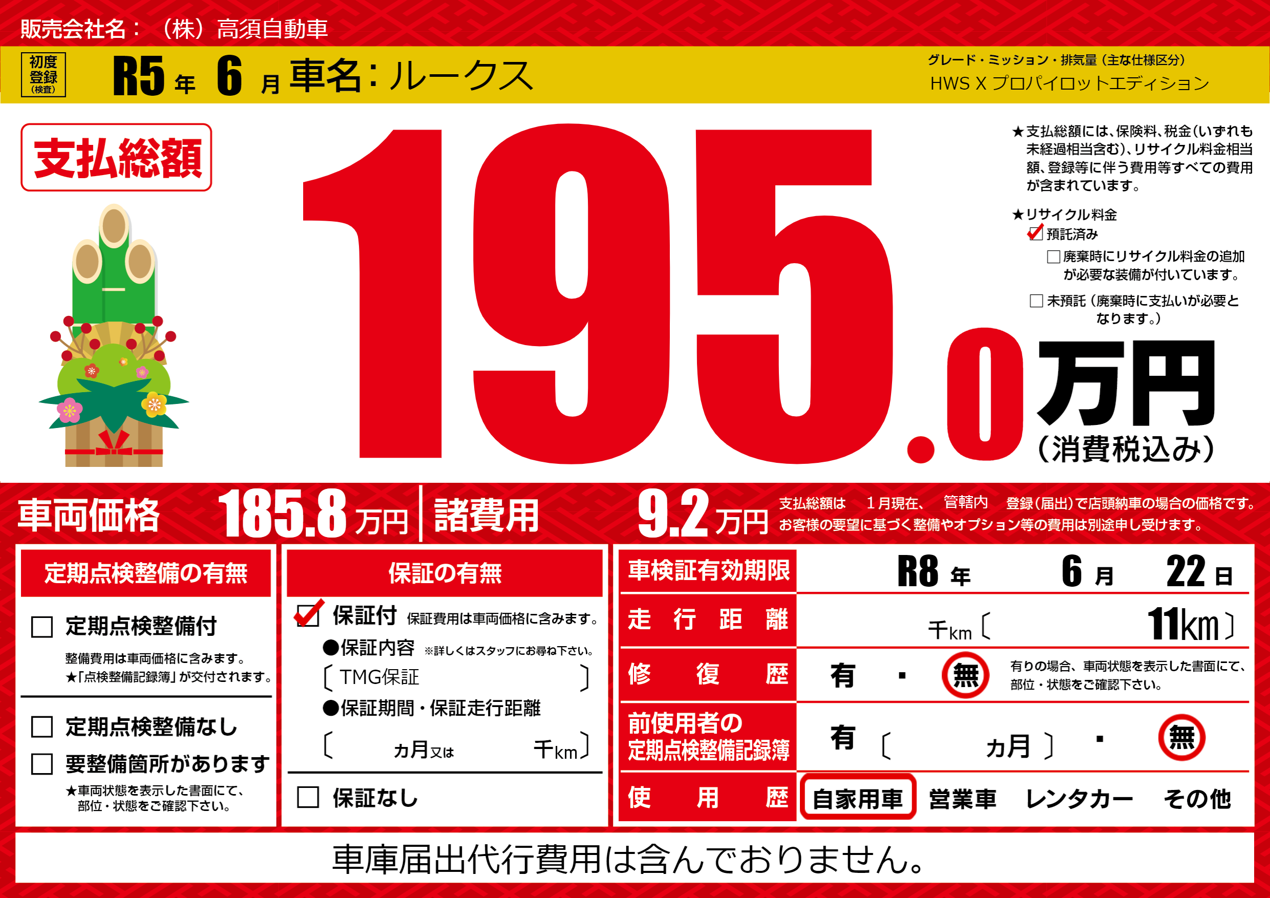 | 走行キロ | - | 初年度登録 | R5年6月 |