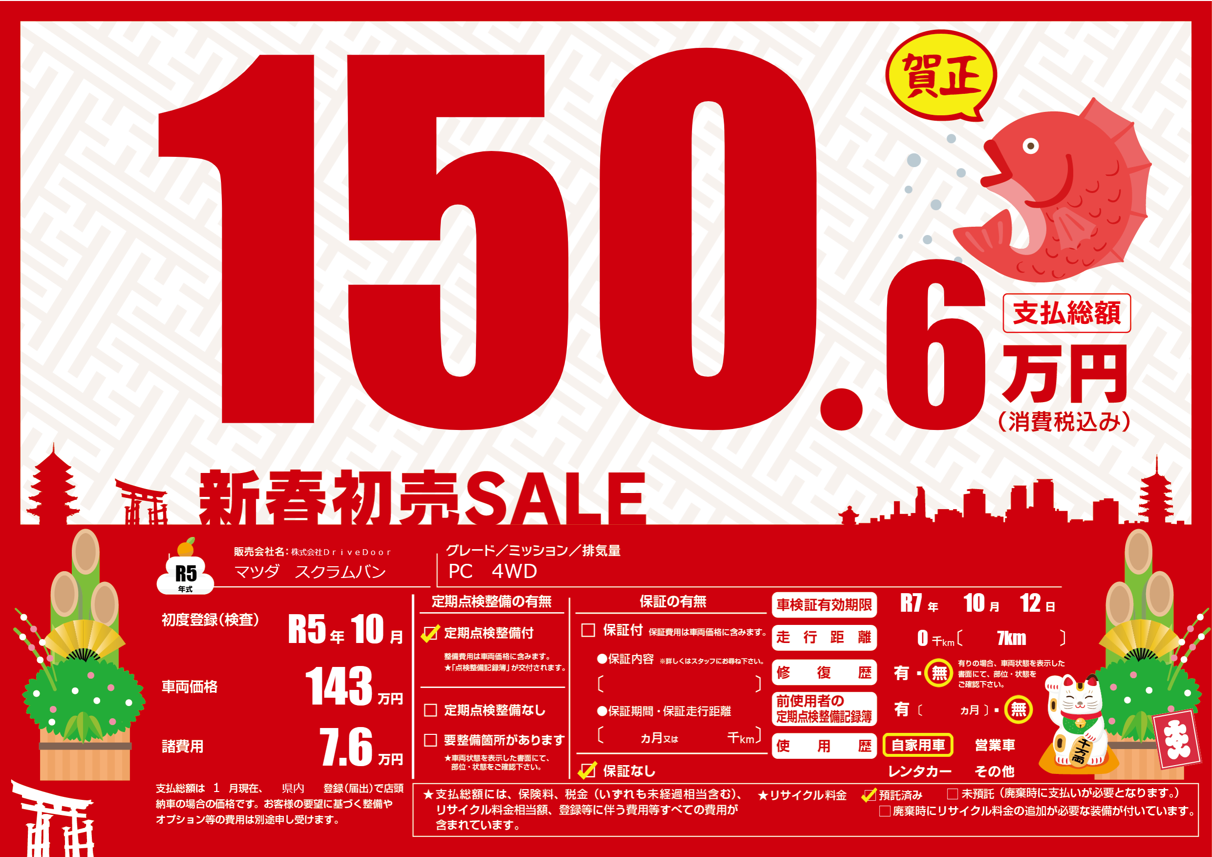 なし | 車検制限 | R7年10月12月 |