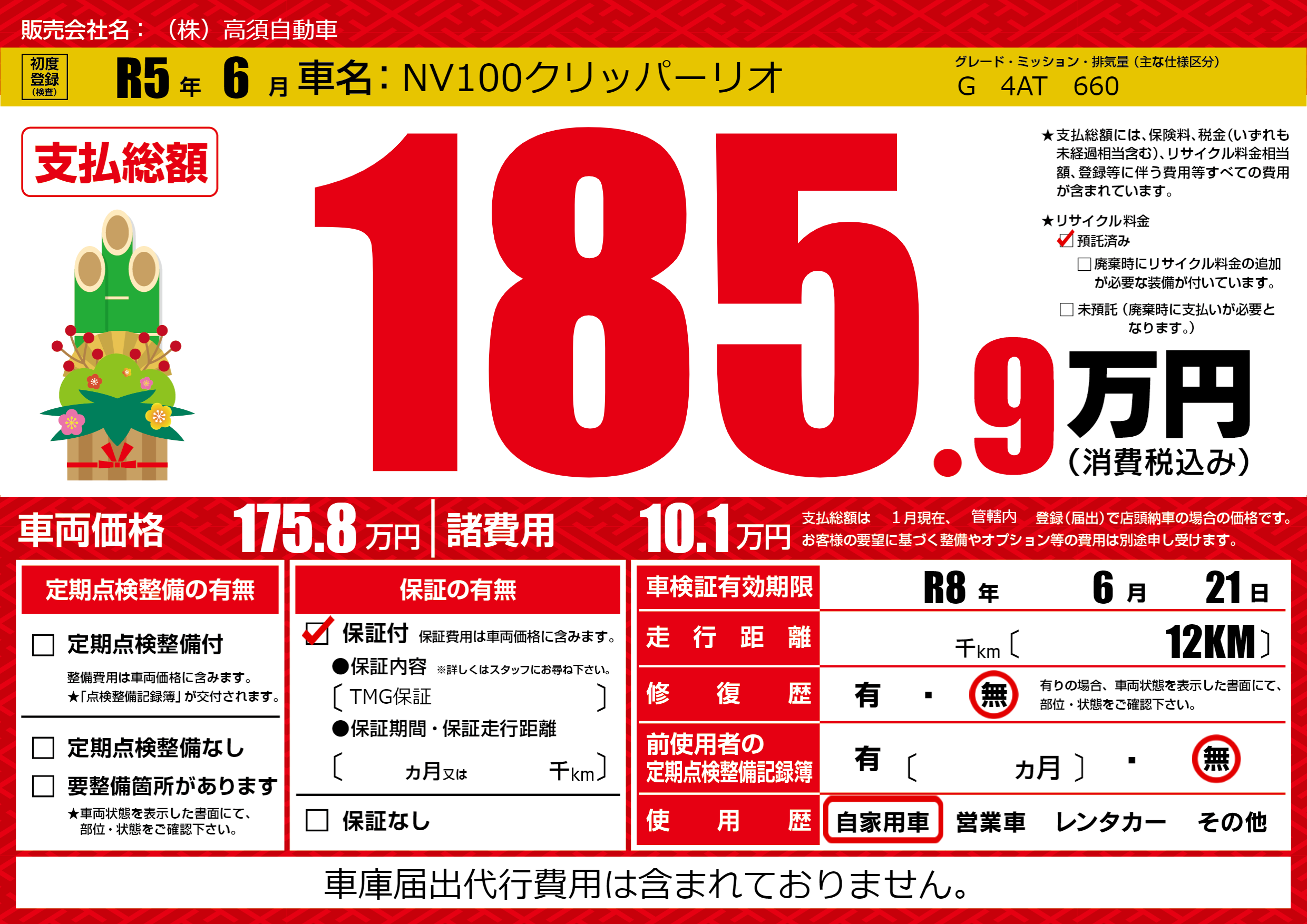 | 車名 | NV100クリッパーリオ | グレード ミッション 排気量 |