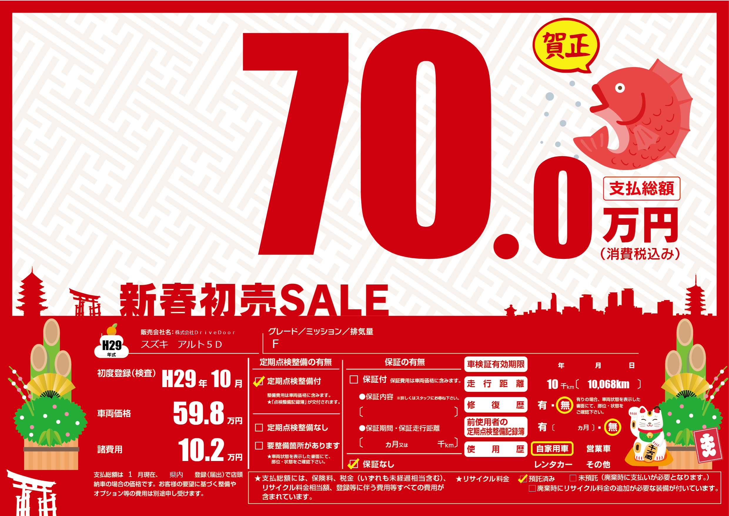 | 走行キロ | 1万km | 初年度登録 | H29年10月 |