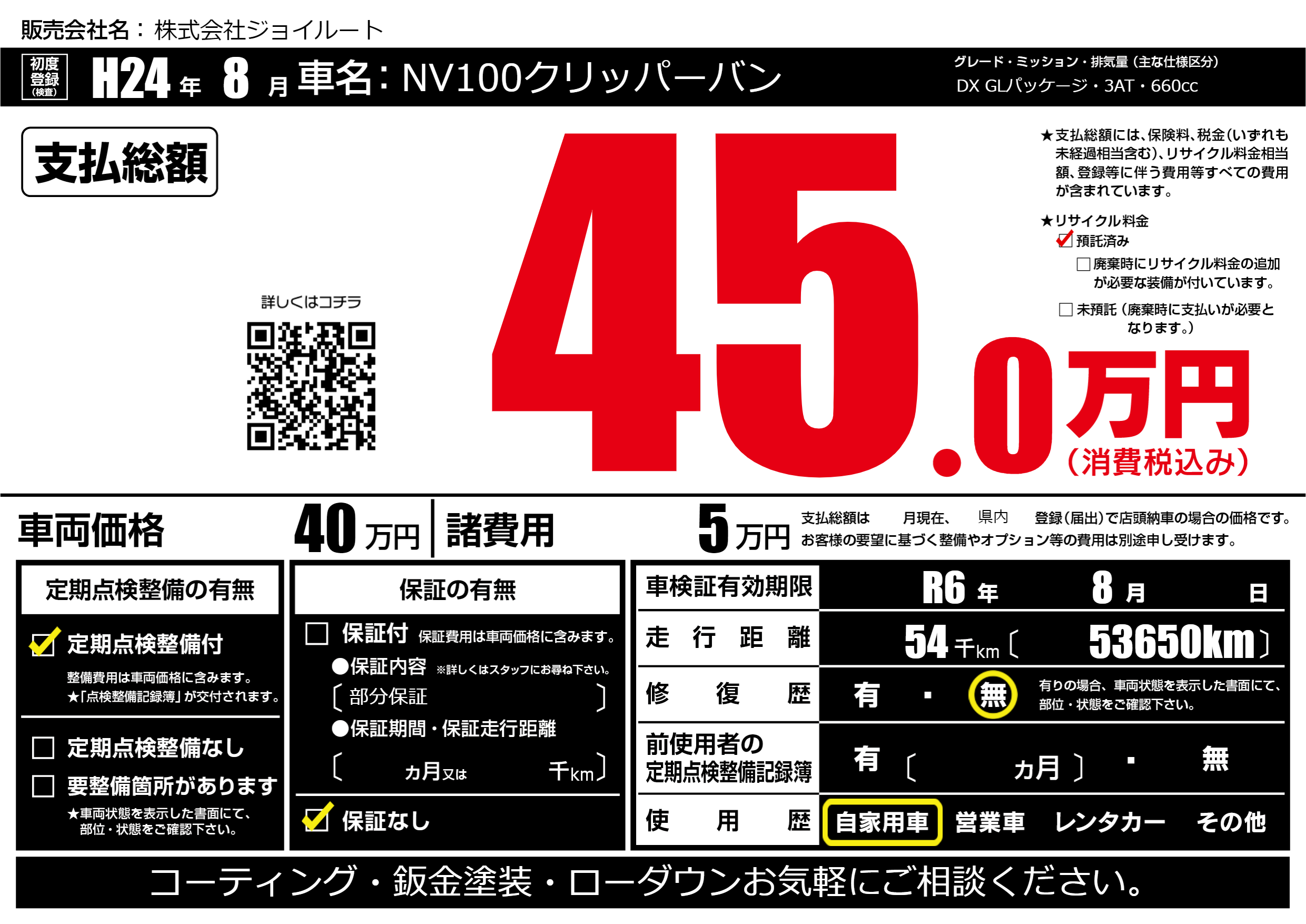 | 車名 | NV100クリッパーバン | グレード ミッション 排気量 |