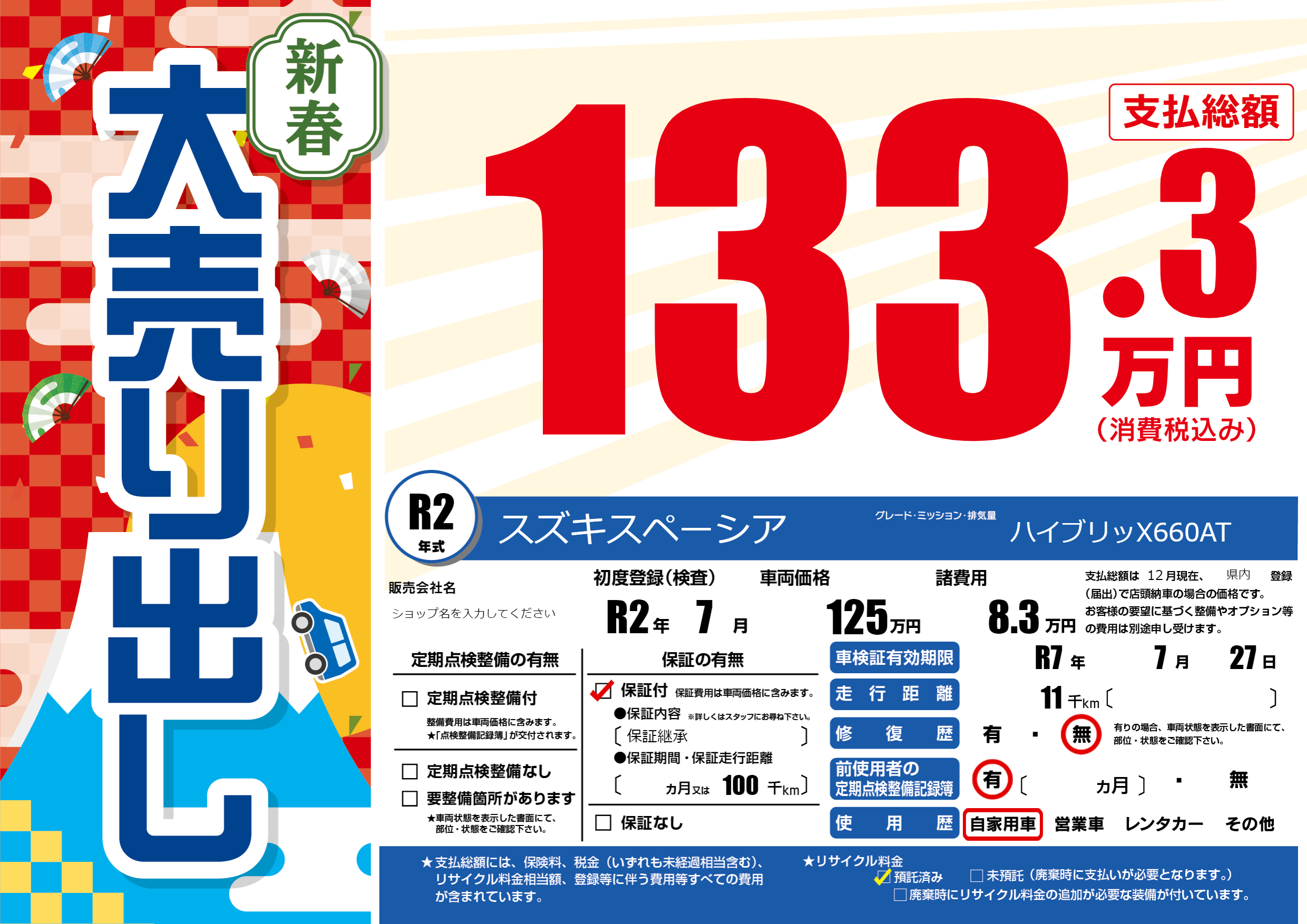 | 車検制限 | R7年 7月 27日 | ||