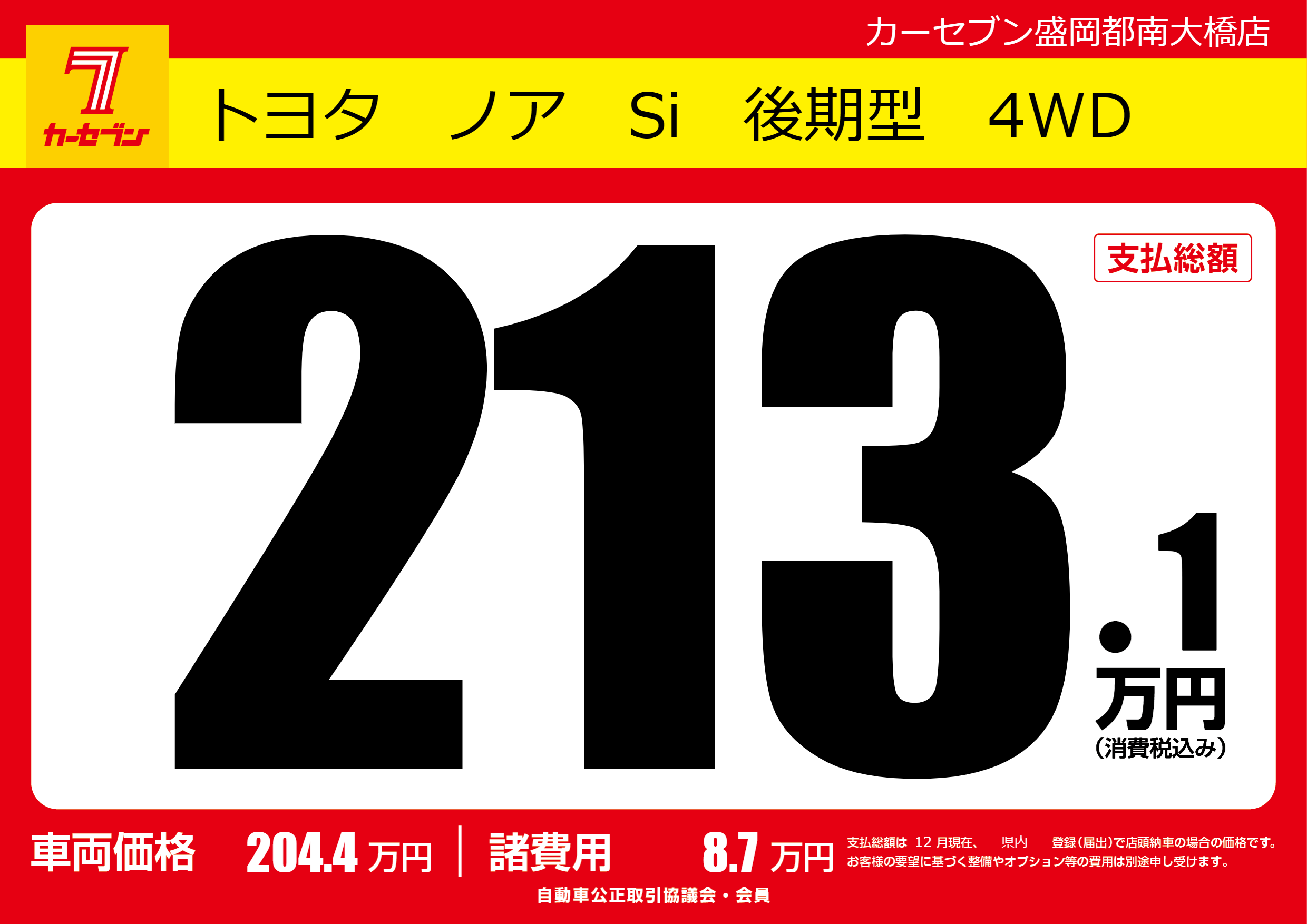 | 車名 | トヨタ ノア Si 後期型 4WD | グレード ミッション 排気量 |