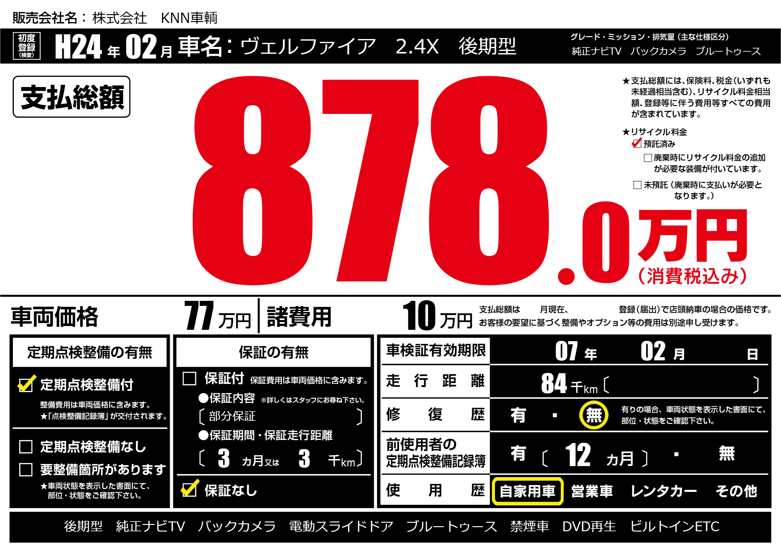 | 走行キロ | 8.4万km | 初年度登録 | H24年02月 |
