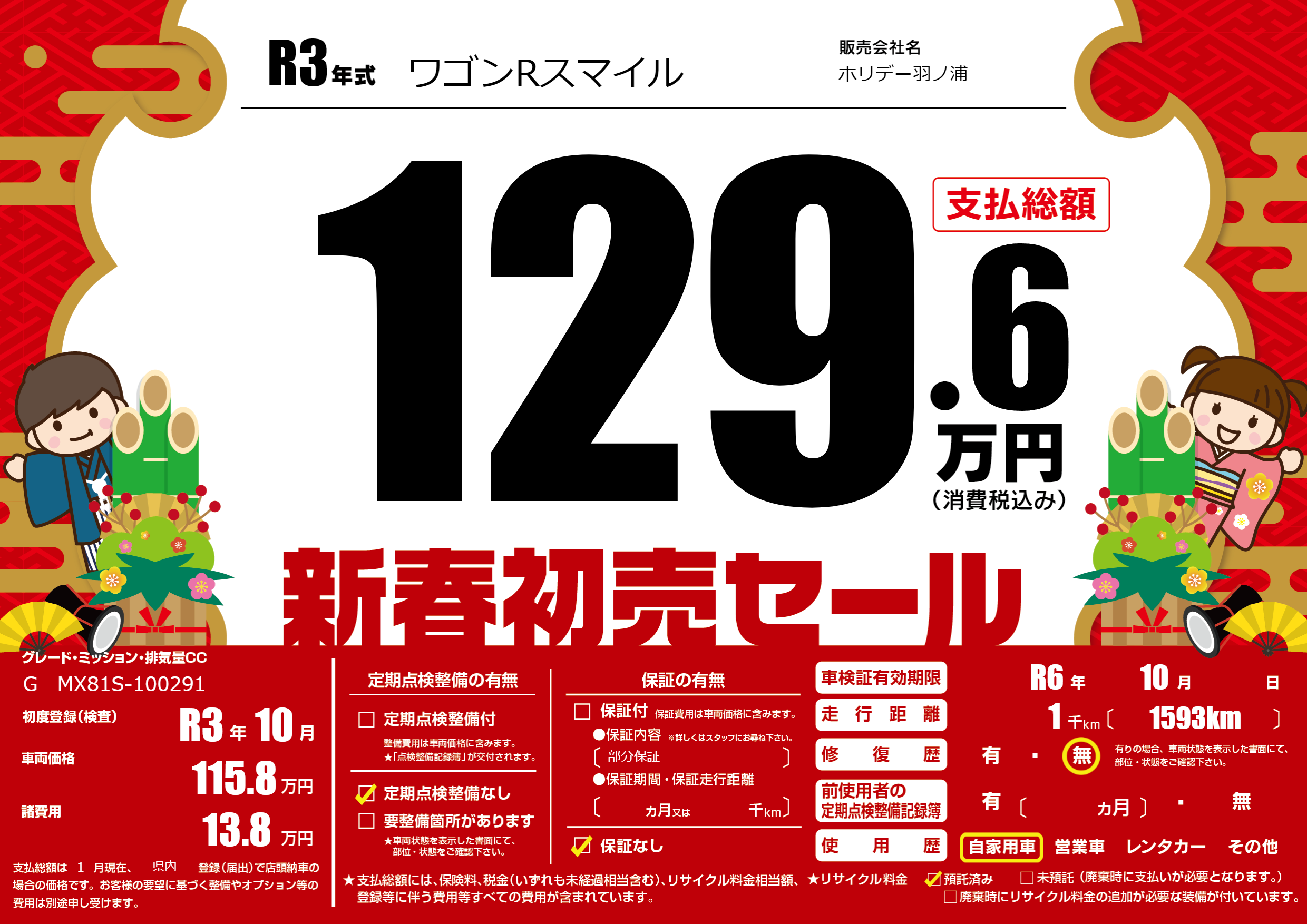 | 車名 | ワゴンRスマイル | グレード ミッション 排気量 |