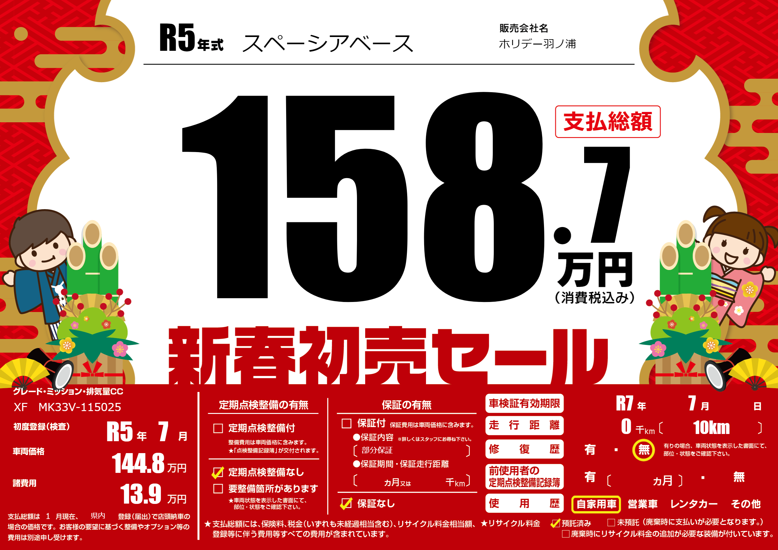 | 車名 | スペーシアベース | グレード ミッション 排気量 |