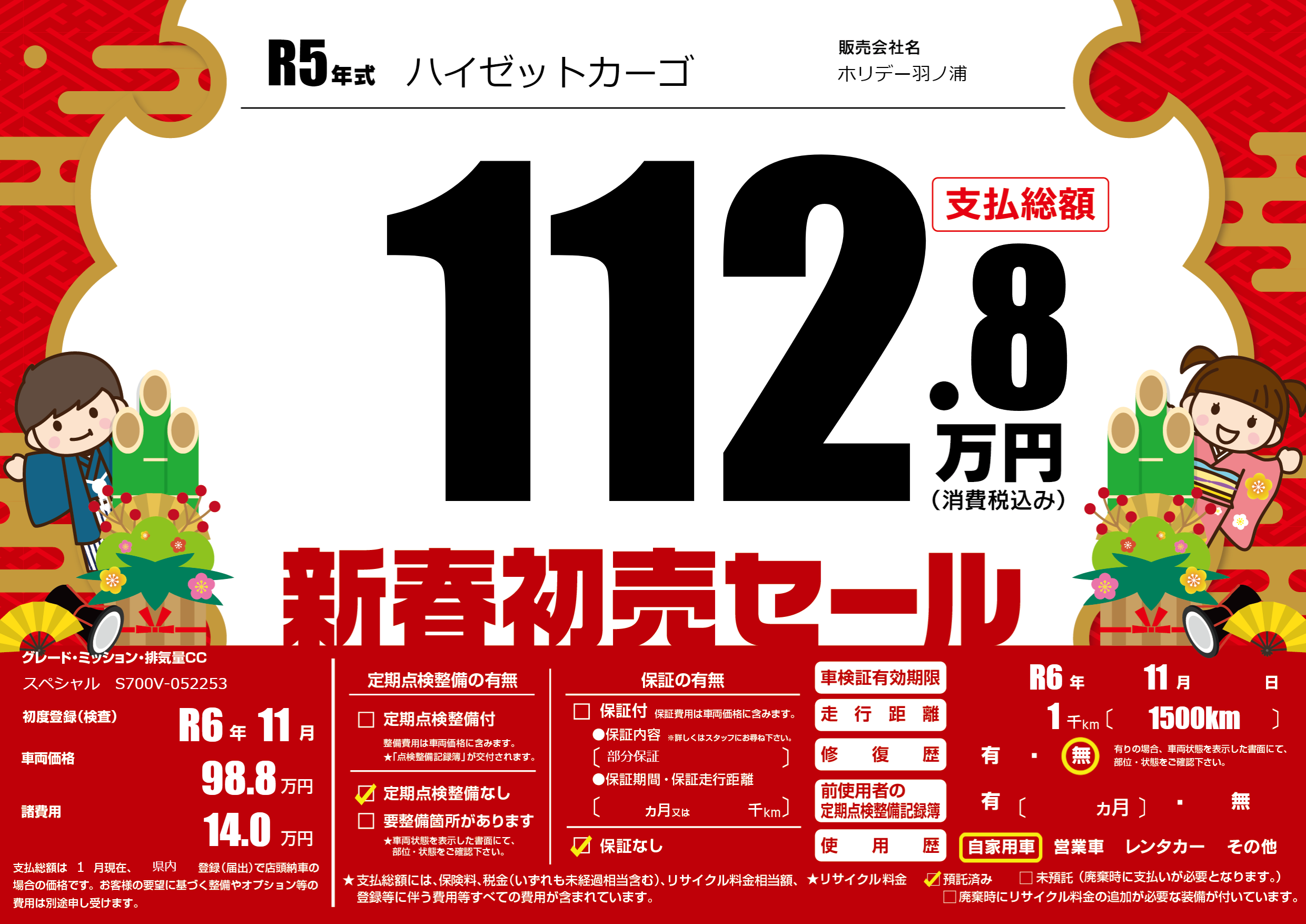 | 車名 | ハイゼットカーゴ | グレード ミッション 排気量 |