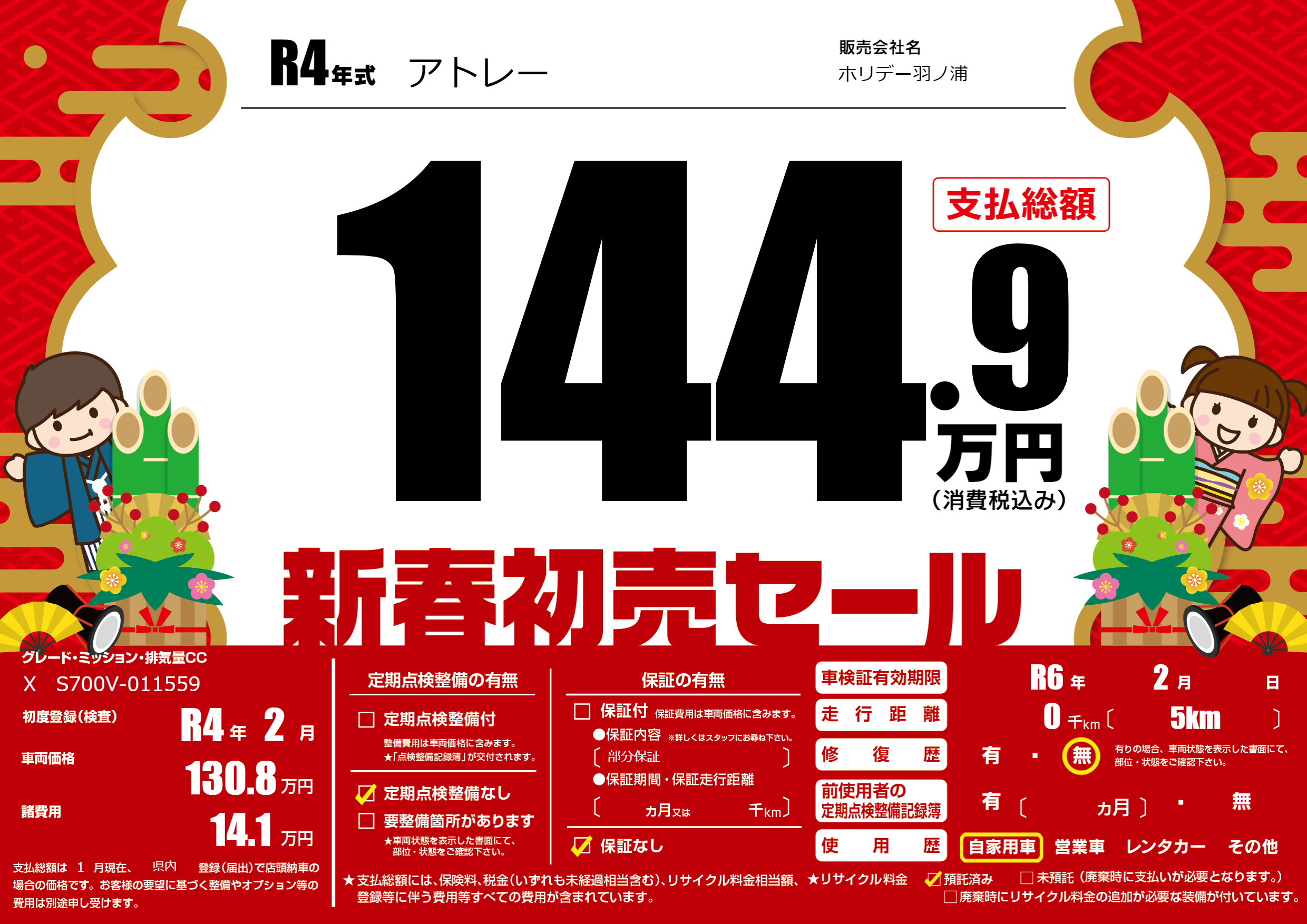 | 車名 | アトレー | グレード ミッション 排気量 |