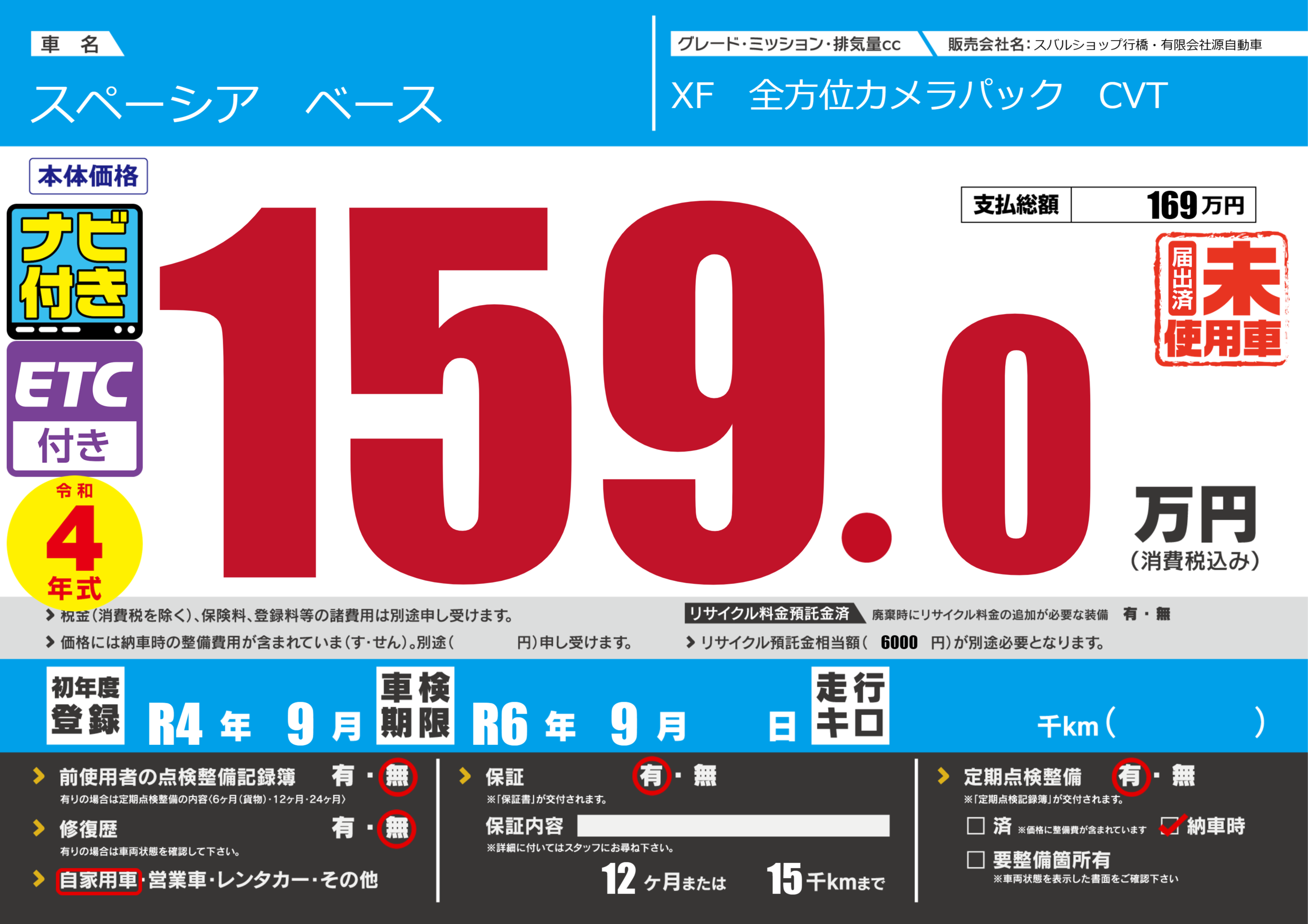 | 走行キロ | - | 初年度登録 | R4年9月 |